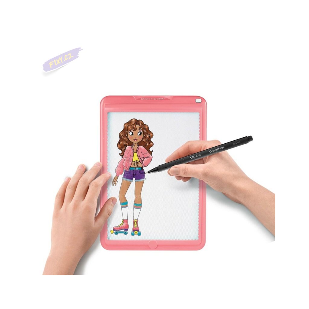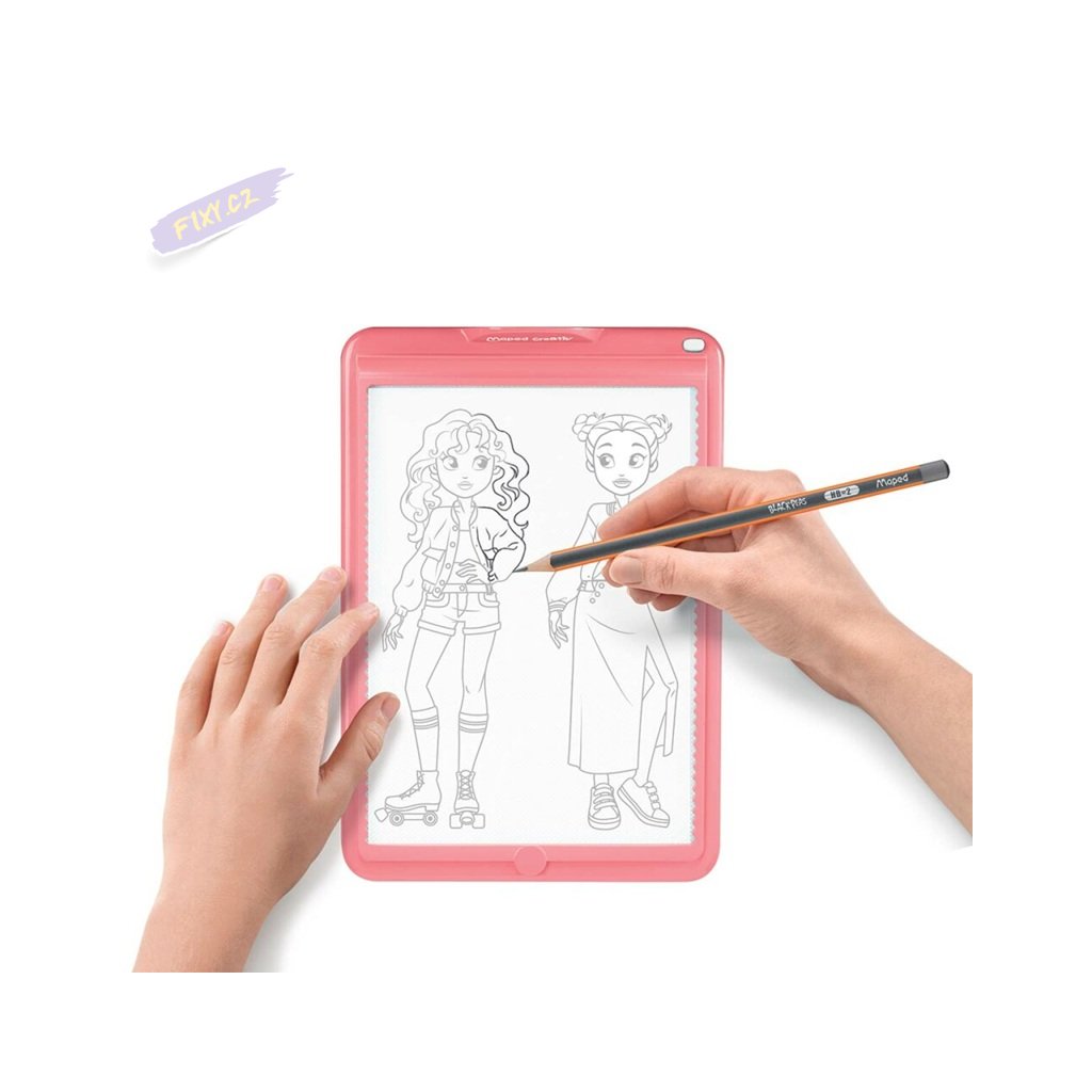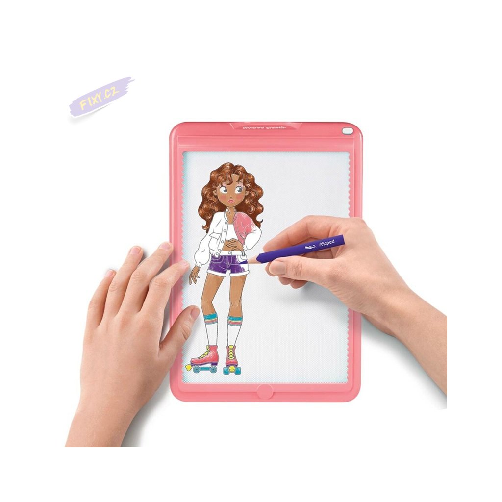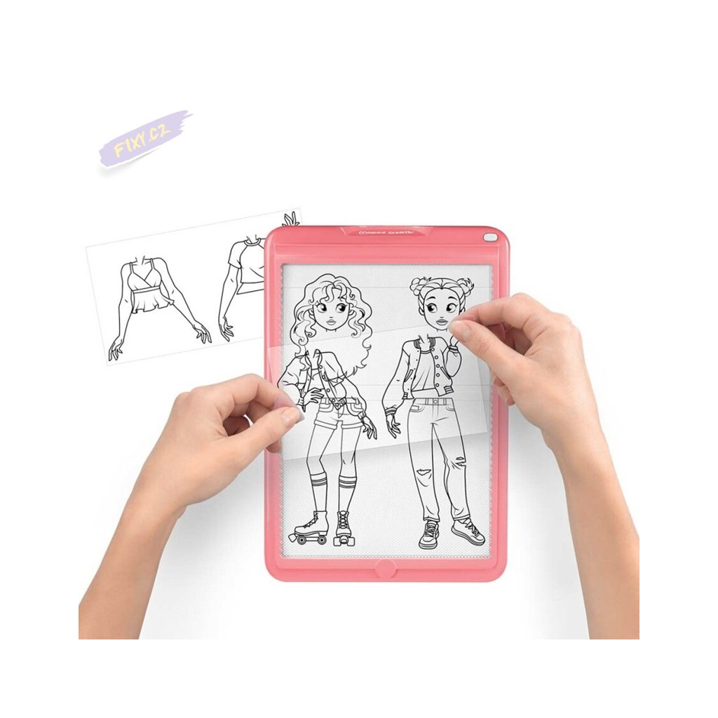Kreativní sada Maped Creativ Avatar Tablet Fashion BFF umožňuje dětem vytvářet vlastní módní styly, upravovat je a znovu překreslovat stále dokola. Světelný tablet usnadňuje obkreslování siluet a nabízí více než 500 možných kombinací pro vytváření jedinečných outfitů. Díky vzorovaným papírům a samolepkám mají děti ještě větší prostor pro personalizaci a rozvoj kreativity. Sada funguje na tři baterie AAA (LR03), které nejsou součástí balení.