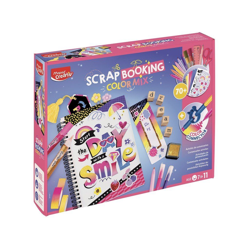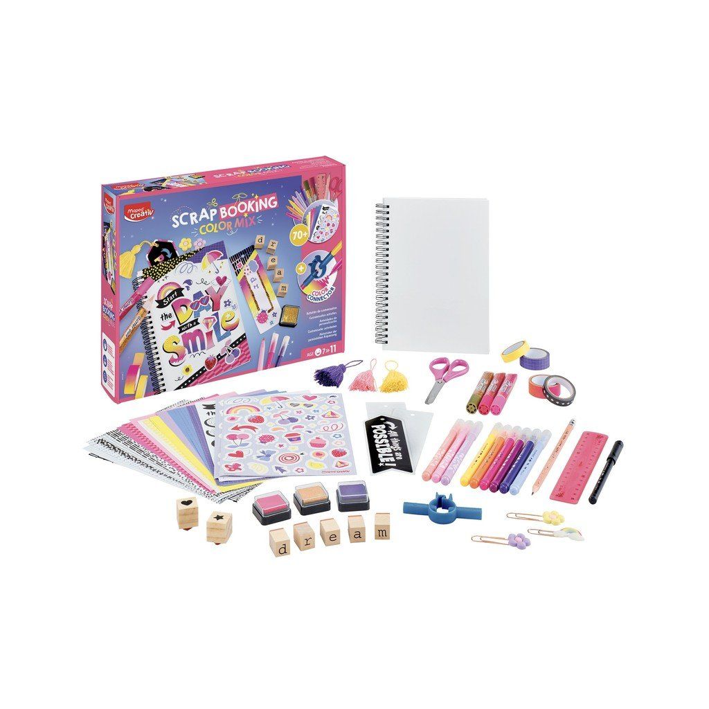 Kreativní sada MAPED Creativ Scrapbooking Color Mix, se kterou si díky nejrůznějším doplňkům vytvoříte svůj originální blok. Vhodné pro děti od 7 let.