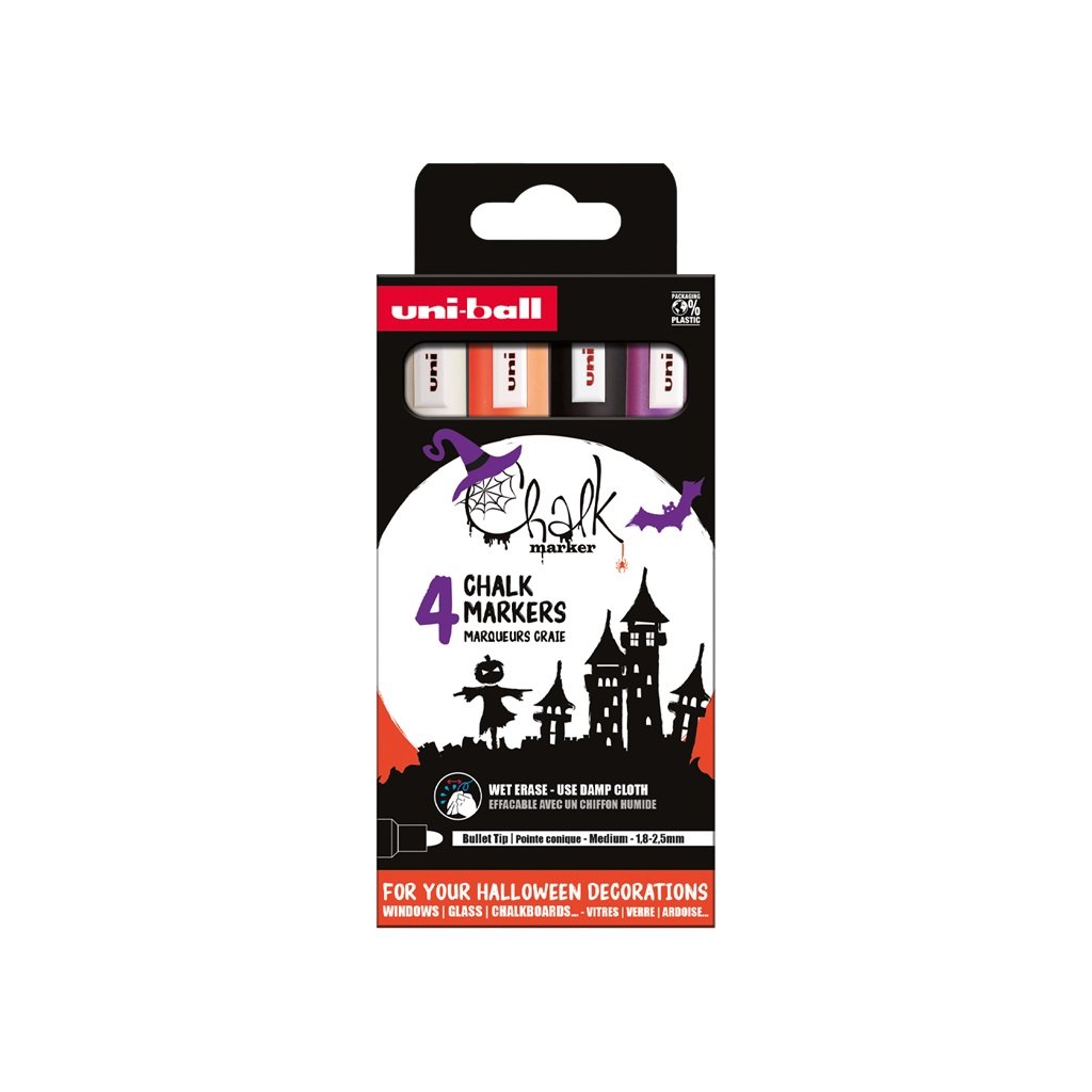 Křídové fixy UNI CHALK 5M, 4 ks Halloween