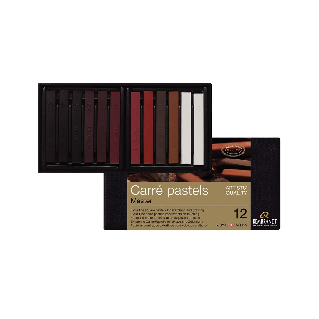 Suché jemné pastely Rembrandt od výrobce ROYAL TALENS jsou světově proslulé pro svou profesionální kvalitu. Pastely Rembrandt jsou založeny na nejčistších typech kaolinu a vysokých koncentracích pigmentů prémiové kvality, které nabízejí nejvyšší stupeň světlostálosti. Pastely Rembrandt Carré ctí stoletou tradici používání přírodních materiálů, jako je křída, porcelán a barevná zemina. Carré pastely jsou exkluzivní řadou z osmnácti tradičních barev, jmenovitě zemitých barev, šedé, bílé a černé. Suroviny jsou stejné jako u jemných pastelů Rembrandt, ale jsou použity v jiném poměru. Díky tomu jsou pastely Carré tvrdší a ideální pro skicování.