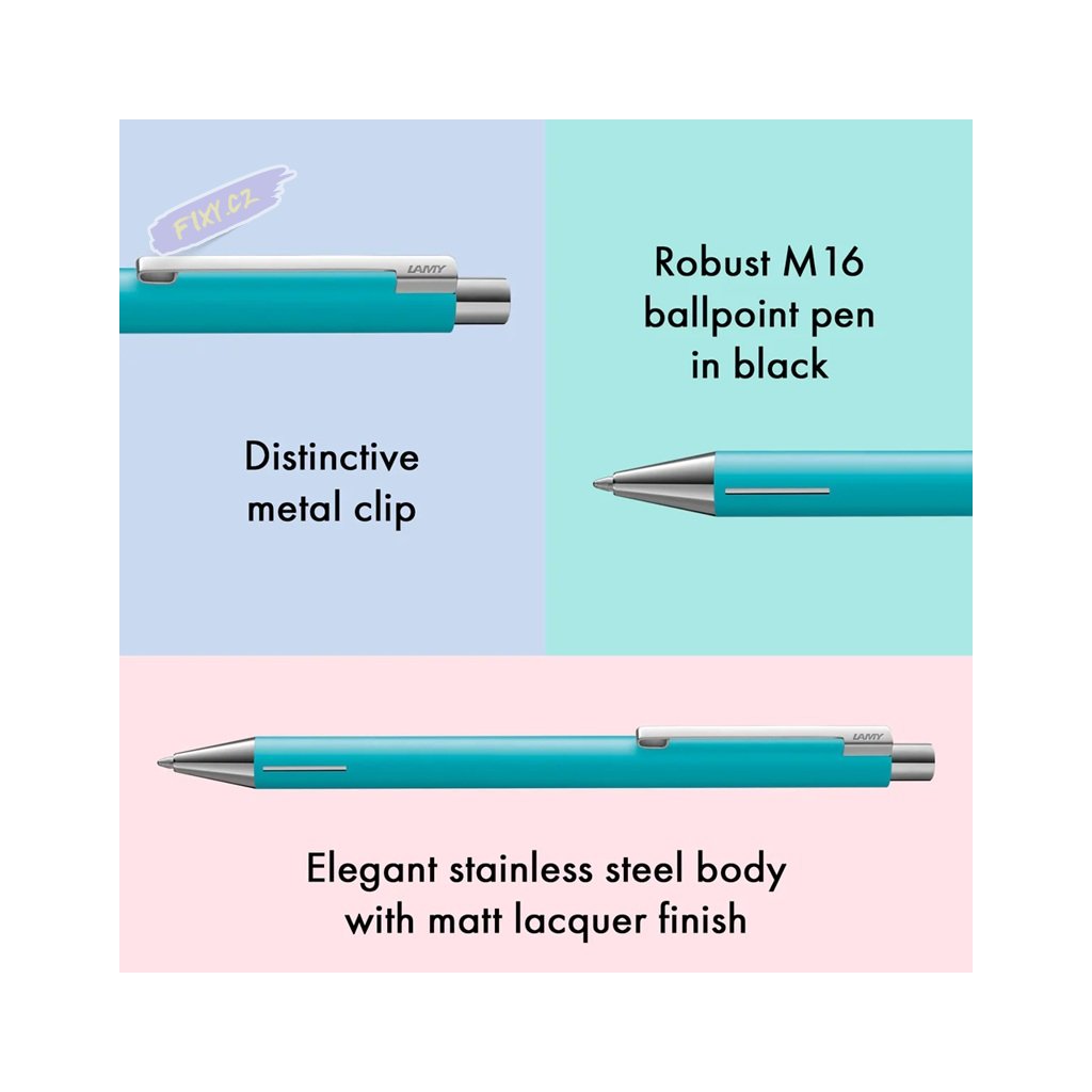 Kuličkové pero LAMY Econ má tělo z nerezové oceli s matnou povrchovou úpravou. V kombinaci s doplňky z nerezové oceli.