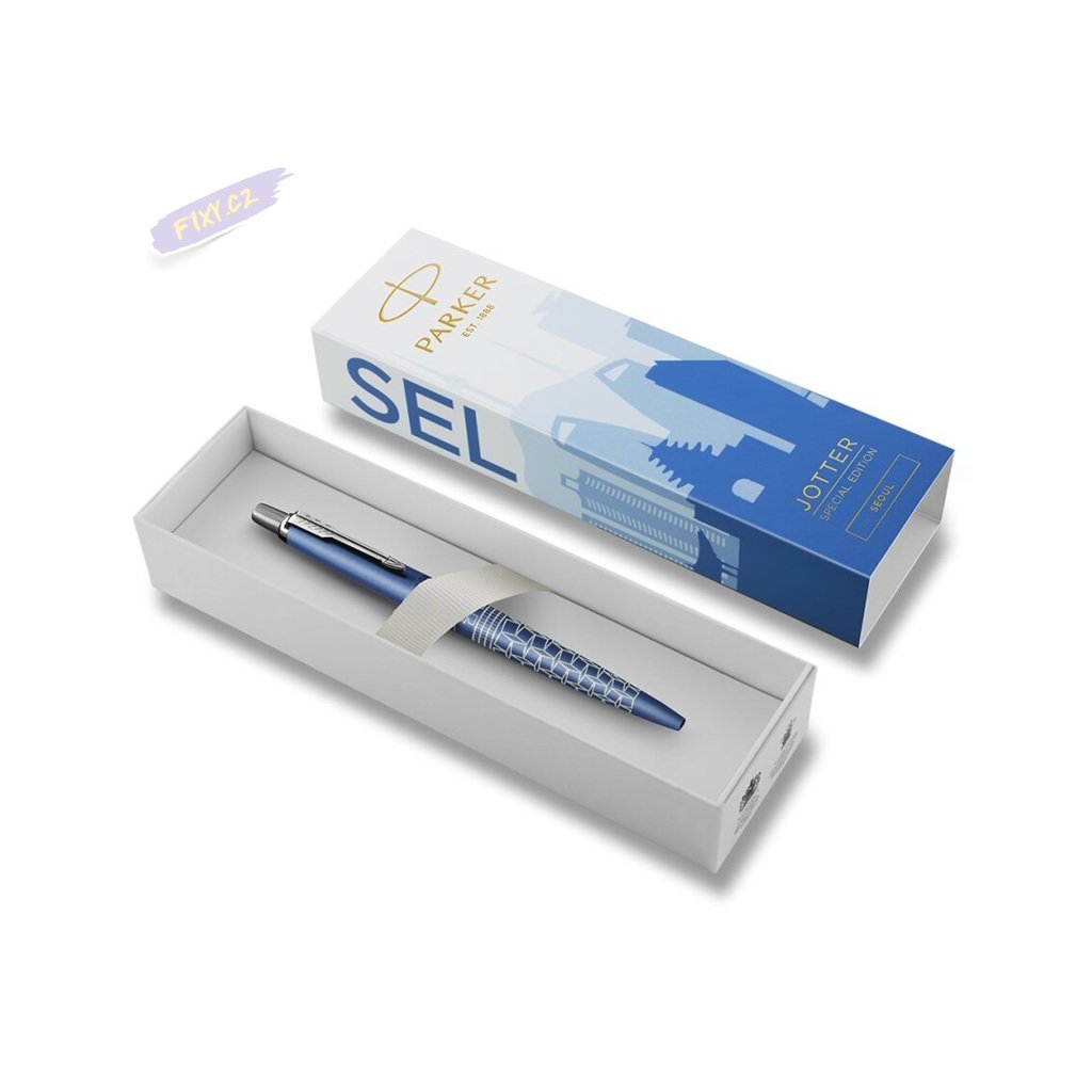 Speciální edice Parker Jotter Global Icons je edice, která je společností Parker vydána na počest nejvíce ohromujících měst planety. Kuličkové pero Parker Jotter SE Seoul Blue CT má nerezové tělo pokryté modrým lakem a laserem vyvedený vzor v designu města Seoul.