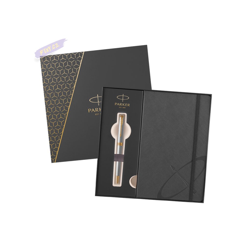 Kuličkové pero PARKER Sonnet Stainless Steel GT + šedý zápisník