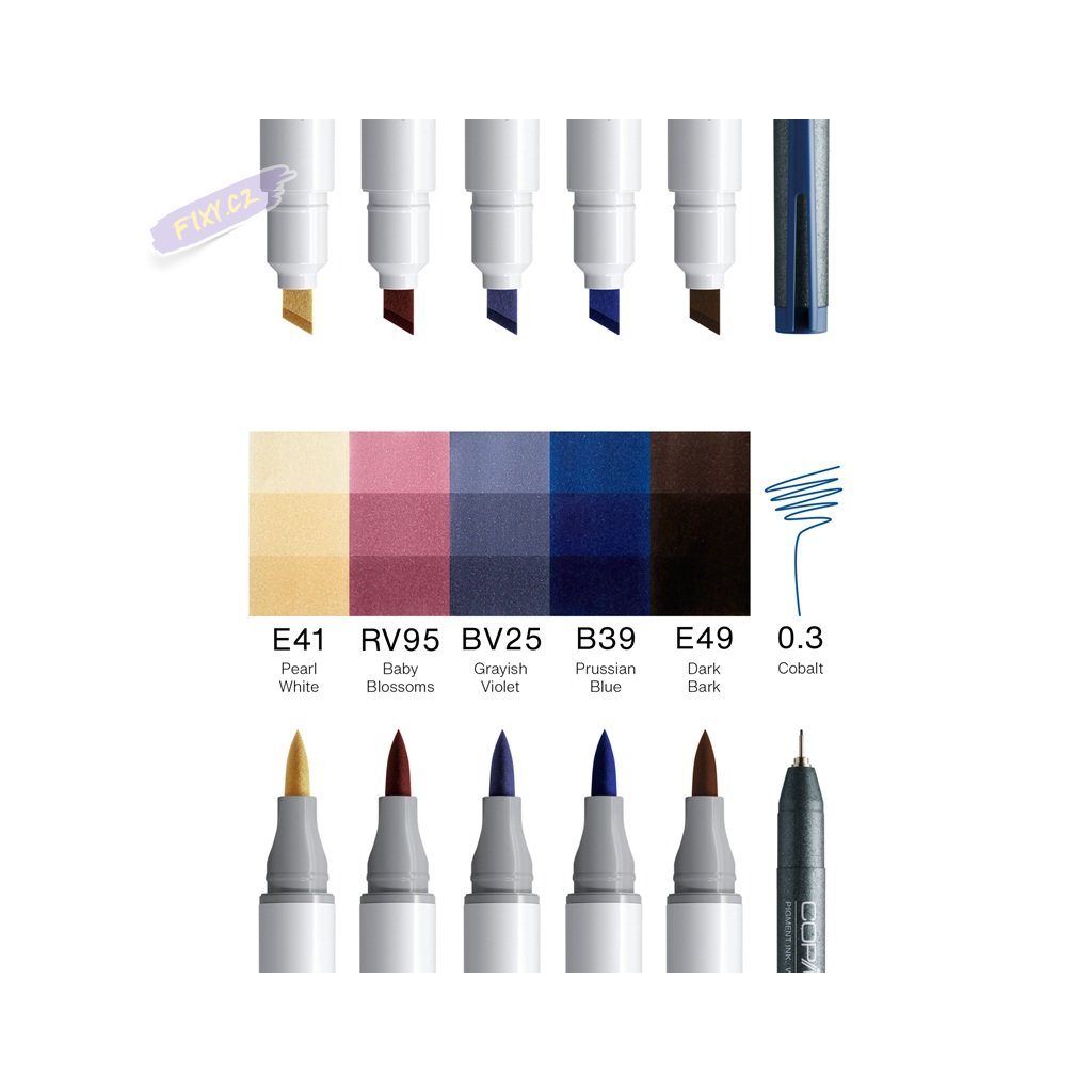 Sada obsahuje: E41, RV95, BV25, B39, E49, Multiliner Cobalt 0,3mm