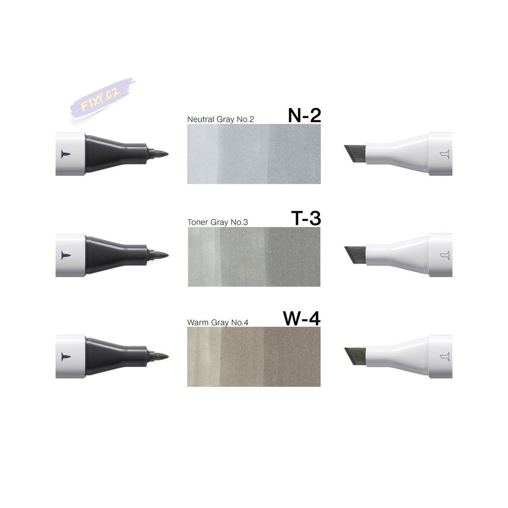 Lihové fixy COPIC Classic oboustranné Fine & Chisel 3ks, Concrete Tints