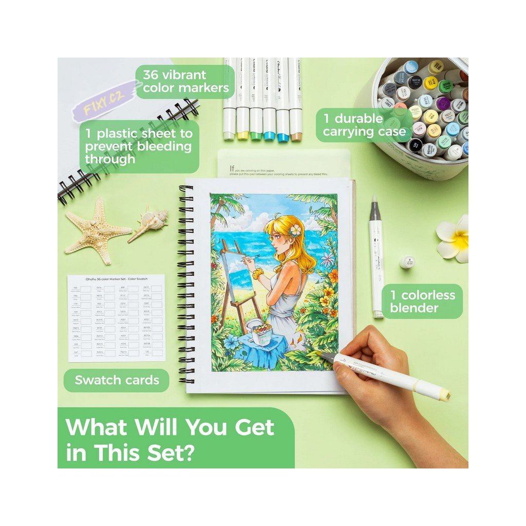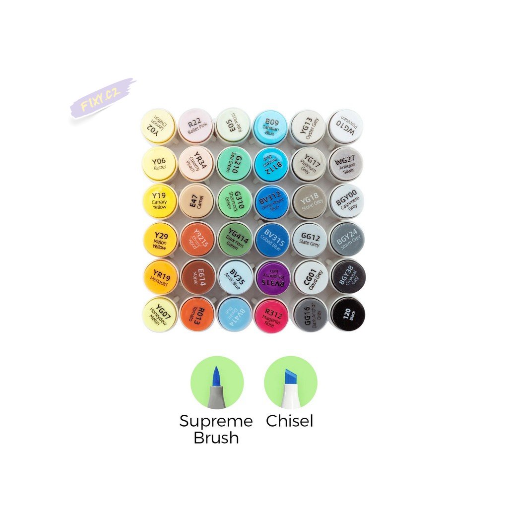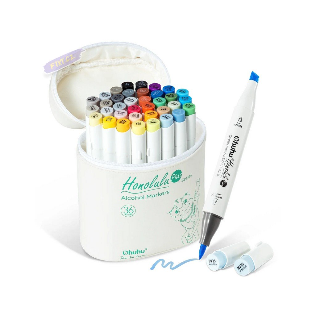 Lihové fixy OHUHU oboustranné PROFI PLUS Brush & Chisel, 36ks základní + blender