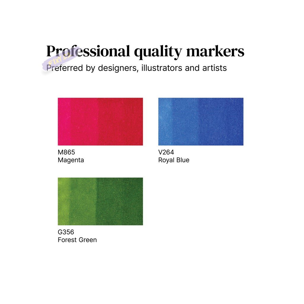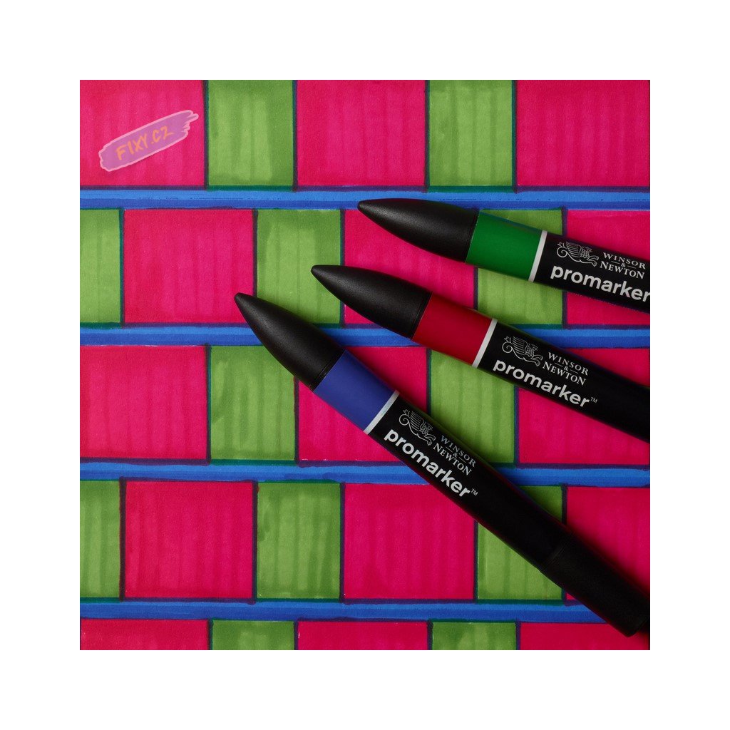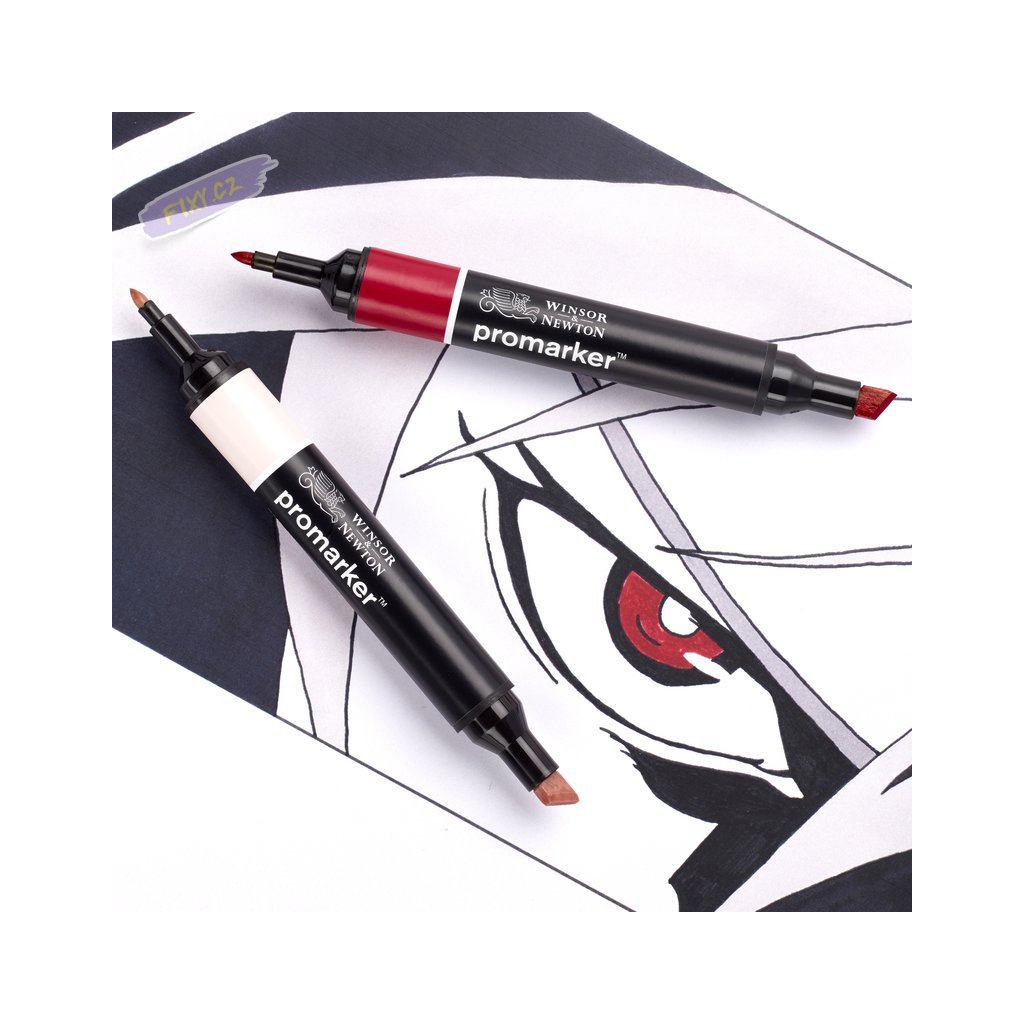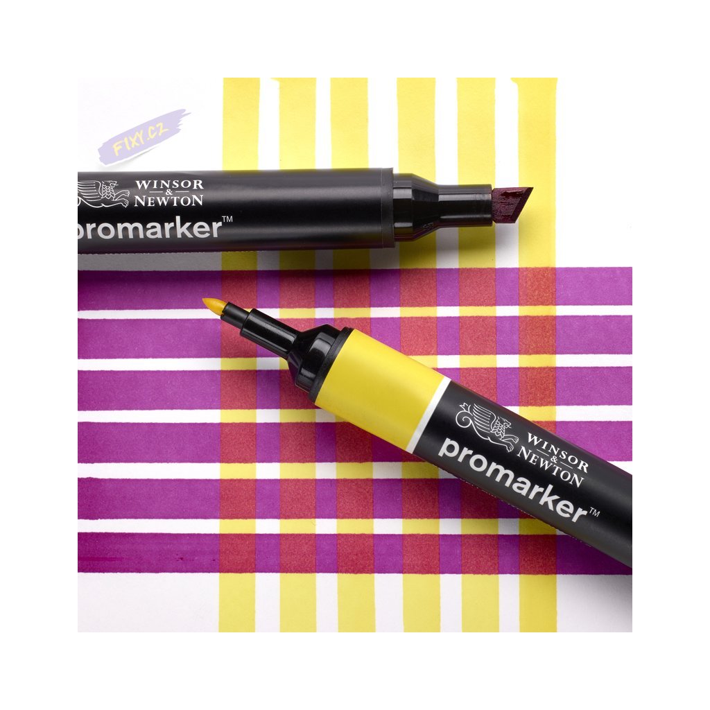 WINSOR & NEWTON Promarker je oboustranný lihový popisovač s širokým šikmým hrotem na jedné straně a tenkým pevným hrotem na straně druhé, který si oblíbili grafičtí designéři, ilustrátoři a umělci z celého světa.