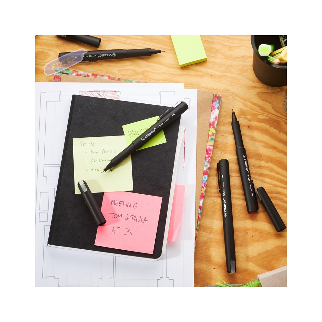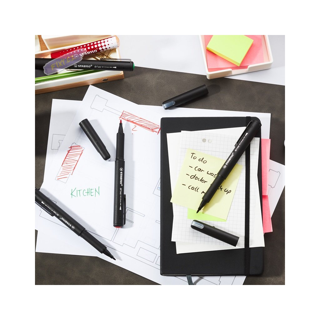 Prémiový tenký liner STABILO dr!ver je dokonalým doplňkem pro všechny příležitosti psaní. Ať už v kanceláři, ve třídě nebo doma – liner je nadčasový, jednoduchý a velmi spolehlivý psací nástroj. Moderní černý designový liner má také kovový klip, který umožňuje jeho připevnění k tašce nebo notebooku.