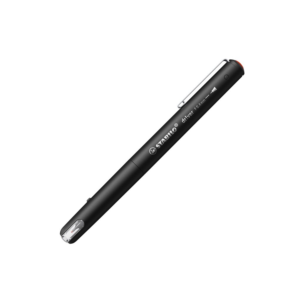 Prémiový tenký liner STABILO dr!ver je dokonalým doplňkem pro všechny příležitosti psaní. Ať už v kanceláři, ve třídě nebo doma – liner je nadčasový, jednoduchý a velmi spolehlivý psací nástroj. Tenký hrot s šířkou stopy 0,4mm je opatřen pružinou pro hladké a snadné psaní. Moderní černý designový liner má také kovový klip, který umožňuje jeho připevnění k tašce nebo notebooku.