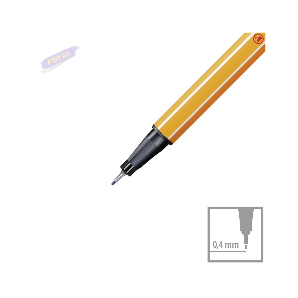 STABILO Point 88 je perfektní pro děti, studenty i profesionály. Vyrábí se v nezměněné podobě již od roku 1977 a lidé po celém světě oceňují jeho kvalitu a všestrannou použitelnost v každé situaci. Slavný šestihranný tvar STABILO Point 88 s bílými proužky na hranách se velmi příjemně drží. 65 barev zaručí, že vždy najdete ideální odstín, který potřebujete. Pro zářivější poznámky je v nabídce také 6 neonových barev. Dlouhá životnost a výdrž bez víčka zaručí, že se nemusíte trápit, když ho náhodou zapomenete zavřít. Šíře stopy 0,4mm poskytuje kontrolu a přesnost. Hrot v kovovém pouzdře zajišťuje pevnost a dlouhou životnost. Při kreslení můžete vytvářet složité detaily, při psaní můžete psát opravdu malá písmenka. Je také vhodný pro práci s pravítkem, šablonami a pro rýsování.