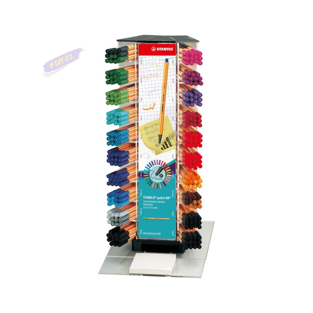 STABILO Point 88 je perfektní pro děti, studenty i profesionály. Vyrábí se v nezměněné podobě již od roku 1977 a lidé po celém světě oceňují jeho kvalitu a všestrannou použitelnost v každé situaci. Slavný šestihranný tvar STABILO Point 88 s bílými proužky na hranách se velmi příjemně drží. 65 barev zaručí, že vždy najdete ideální odstín, který potřebujete. Pro zářivější poznámky je v nabídce také 6 neonových barev. Dlouhá životnost a výdrž bez víčka zaručí, že se nemusíte trápit, když ho náhodou zapomenete zavřít. Šíře stopy 0,4mm poskytuje kontrolu a přesnost. Hrot v kovovém pouzdře zajišťuje pevnost a dlouhou životnost. Při kreslení můžete vytvářet složité detaily, při psaní můžete psát opravdu malá písmenka. Je také vhodný pro práci s pravítkem, šablonami a pro rýsování.