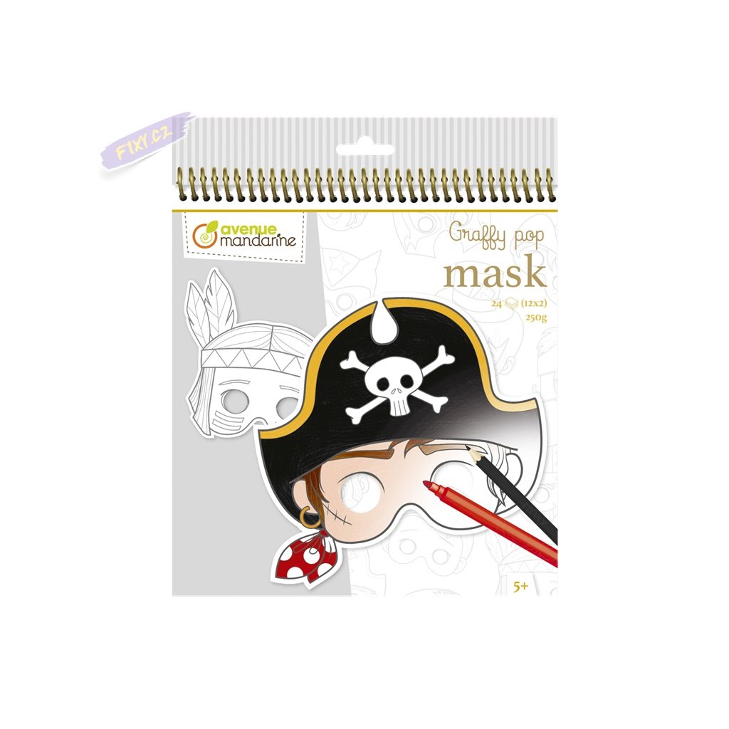 Omalovánky AVENUE MANDARINE Graffy Pop Mask s vyřezanými a předkreslenými motivy masek. Omalovánky obsahují 24 listů, 12 motivů po 2ks. Gramáž 250g. Lze použít na všechny techniky - pastelky, fixy, akvarel atd. Rozměry balení: 20x25,5cm.