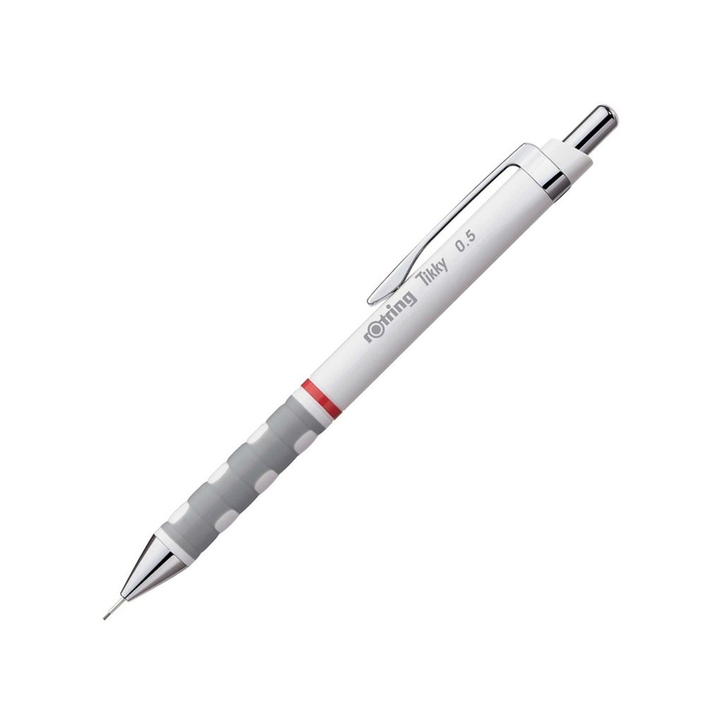 Mechanická tužka (mikrotužka) ROTRING Tikky je skvělým nástrojem pro technické výkresy a náčrtky. Na první pohled ukazuje, jaká šíře linky je k dispozici a umožňuje tak dělat náčrtky, mechanické kresby a texty čistě a dle rýsovacích standardů. Jemný kovový hrot je ideální pro použití v šablonách. Barevné kódování je v souladu s ISO 3098.