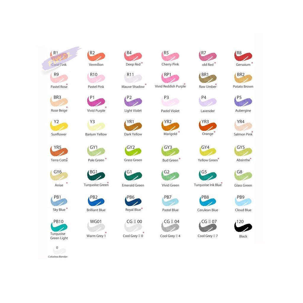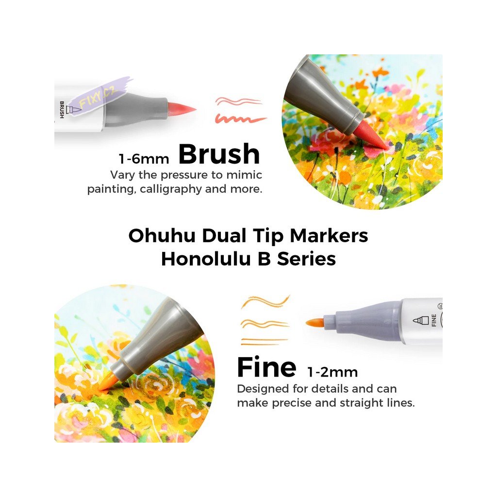 Lihové fixy OHUHU oboustranné Brush & Fine, 48ks základní + blender