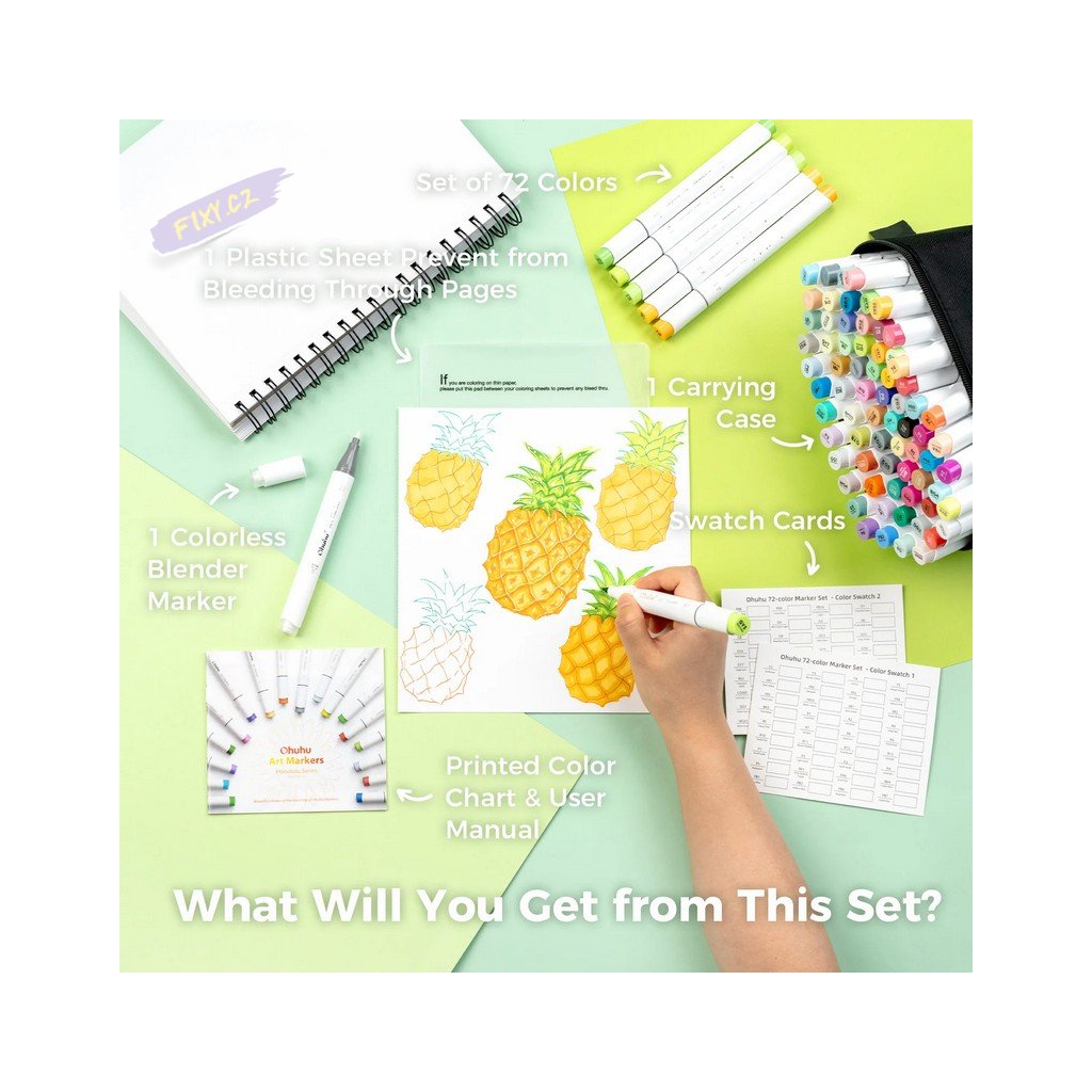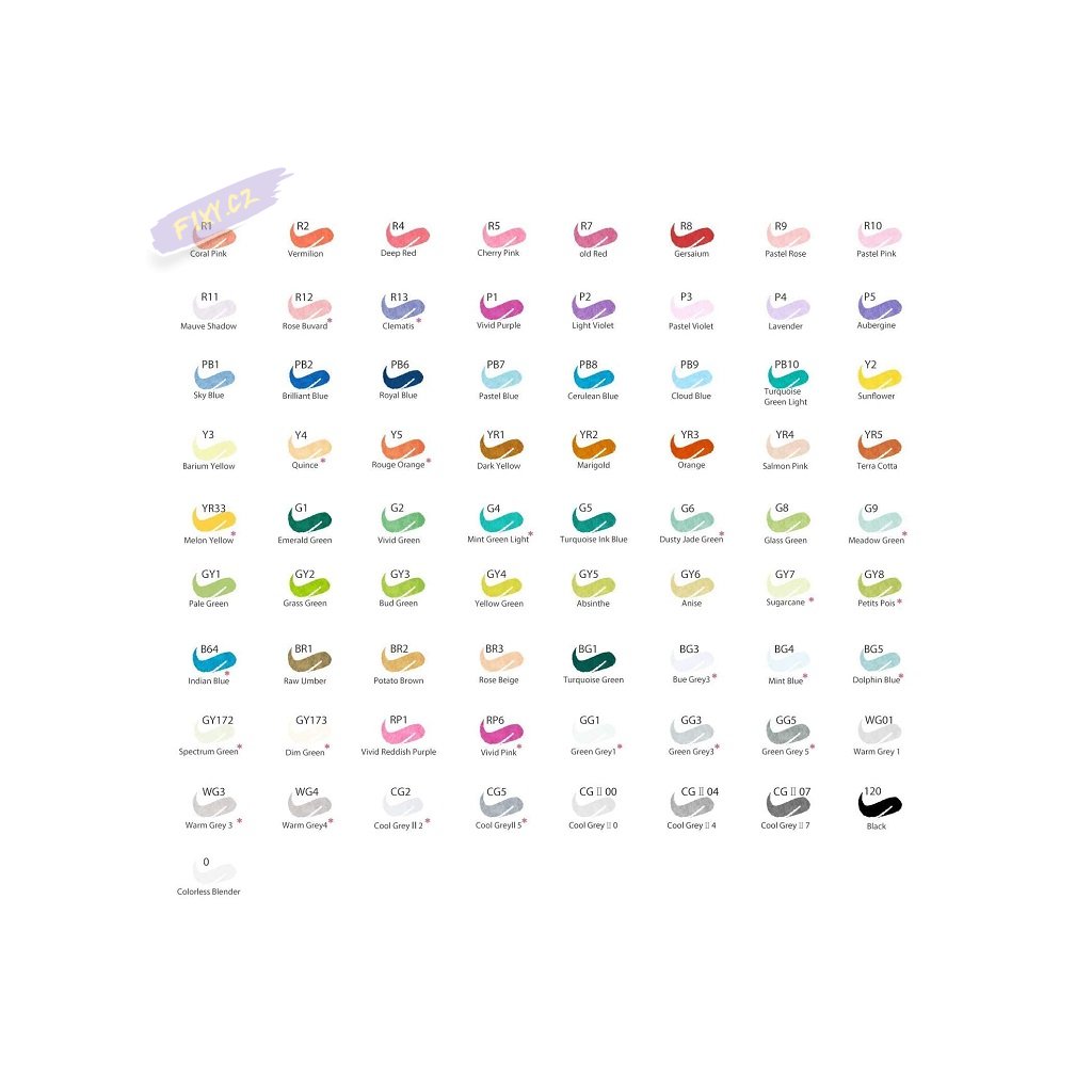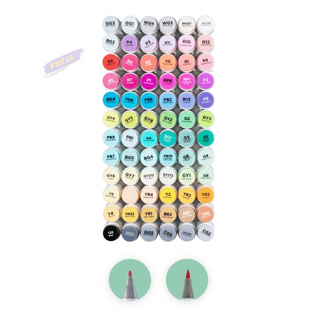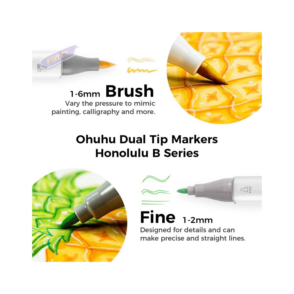 Lihové fixy OHUHU oboustranné Brush & Fine, 72ks + blender