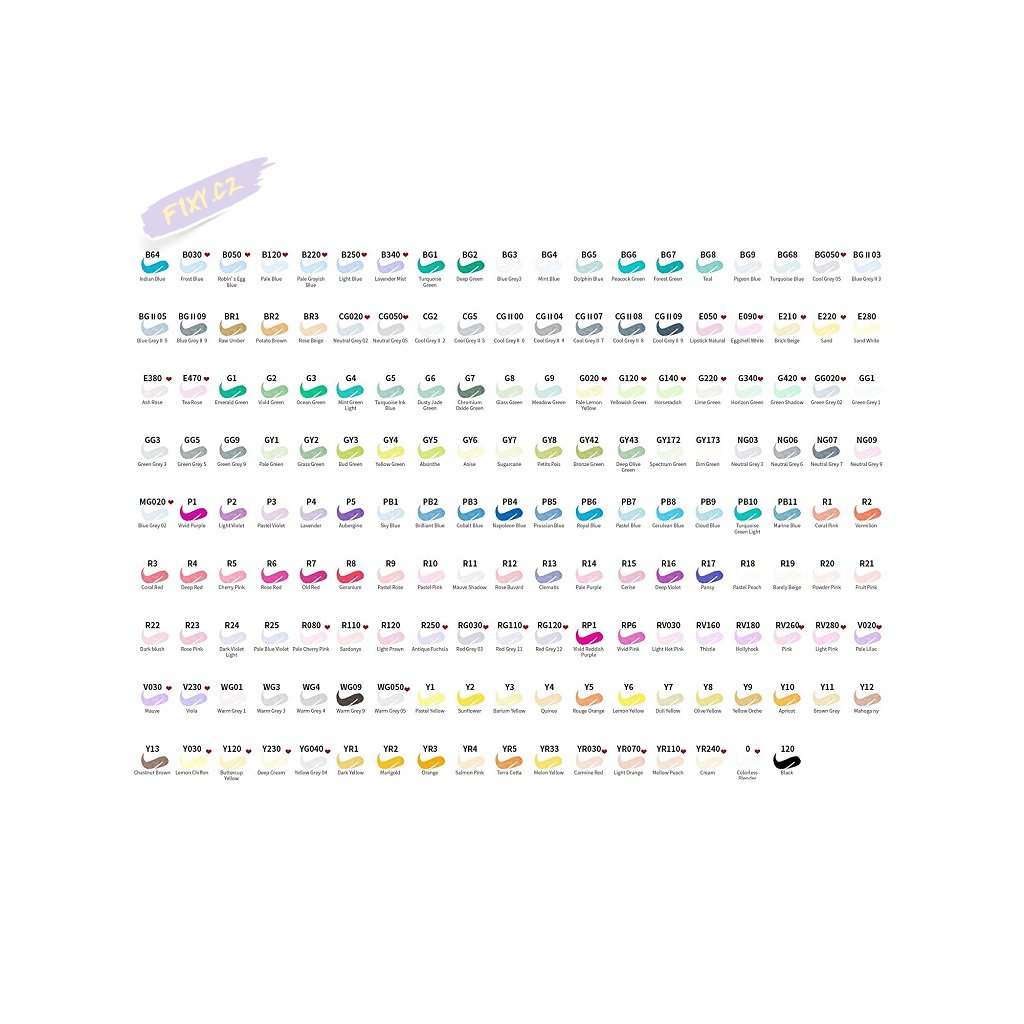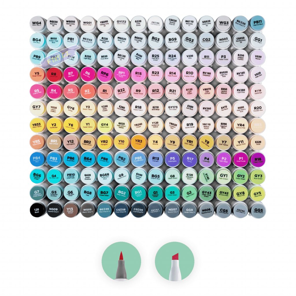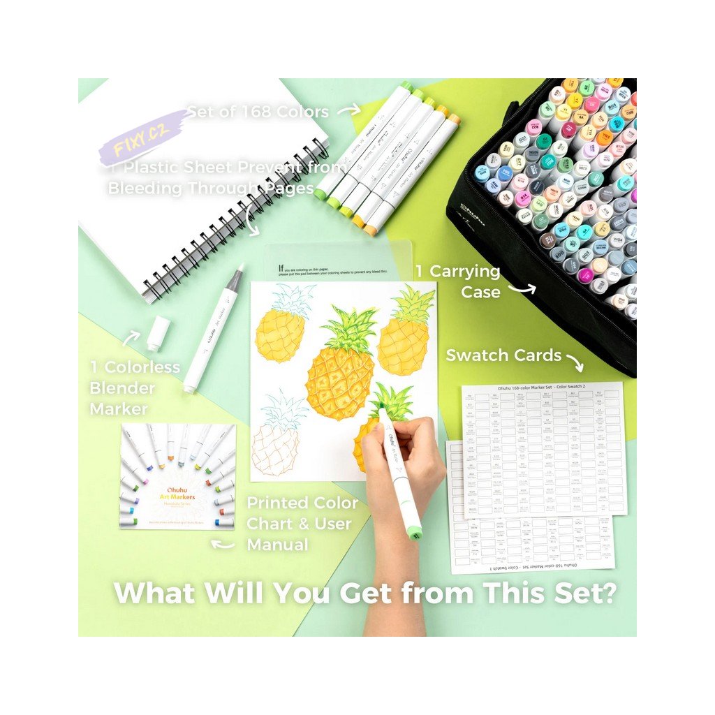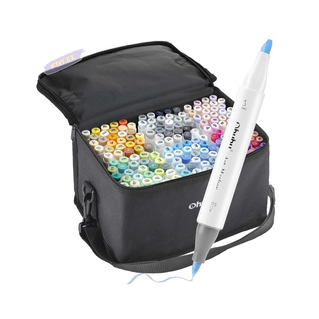 Lihové fixy OHUHU oboustranné Brush & Chisel, 168ks + blender