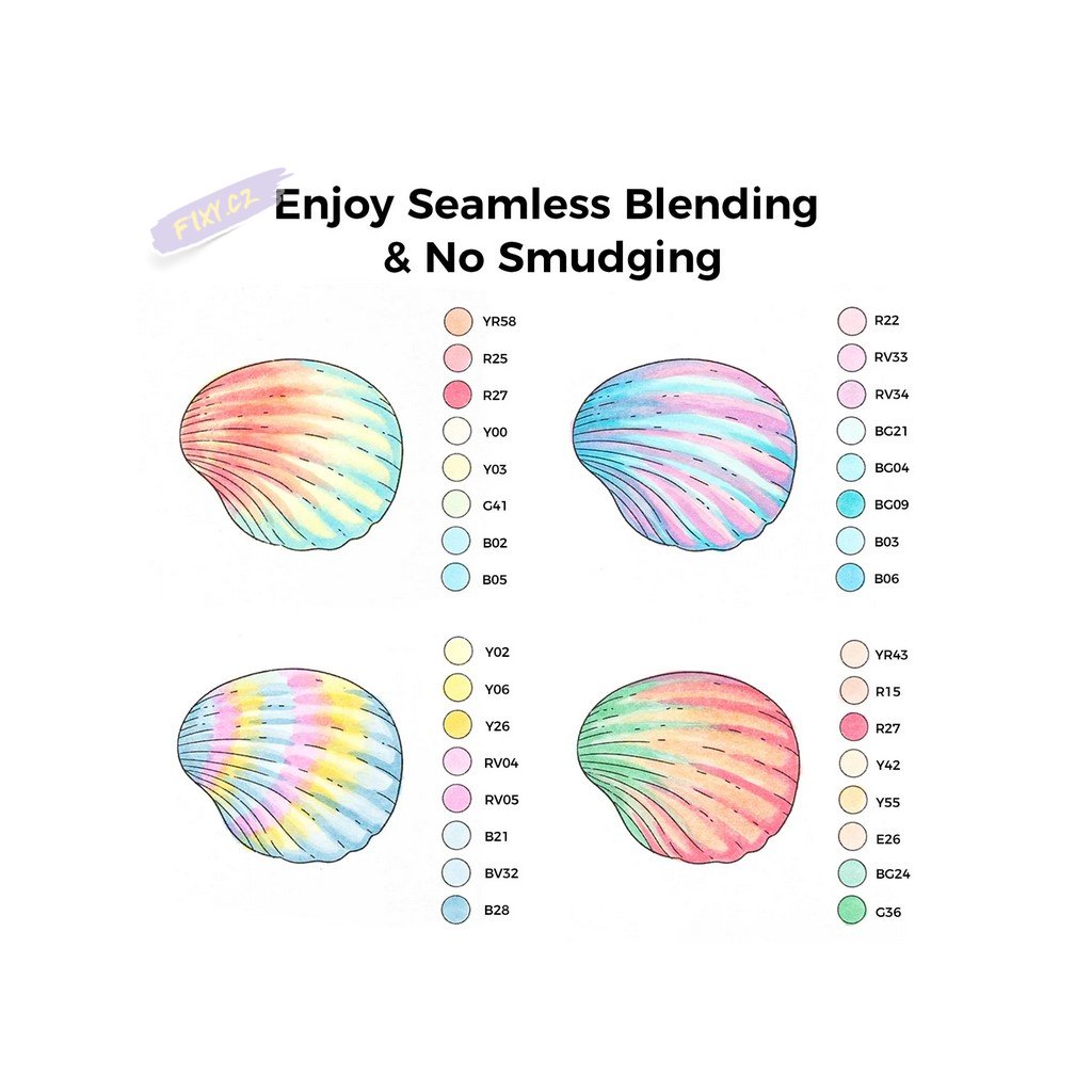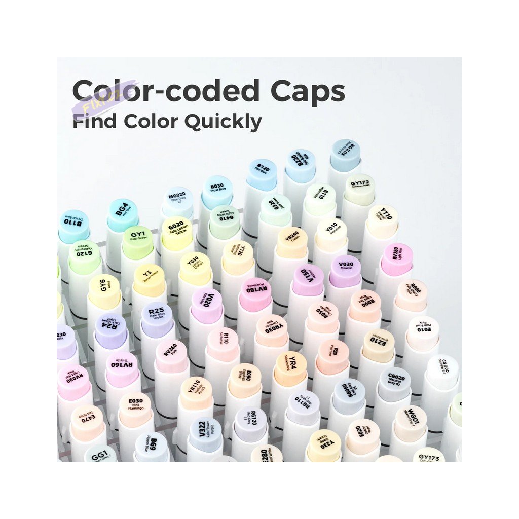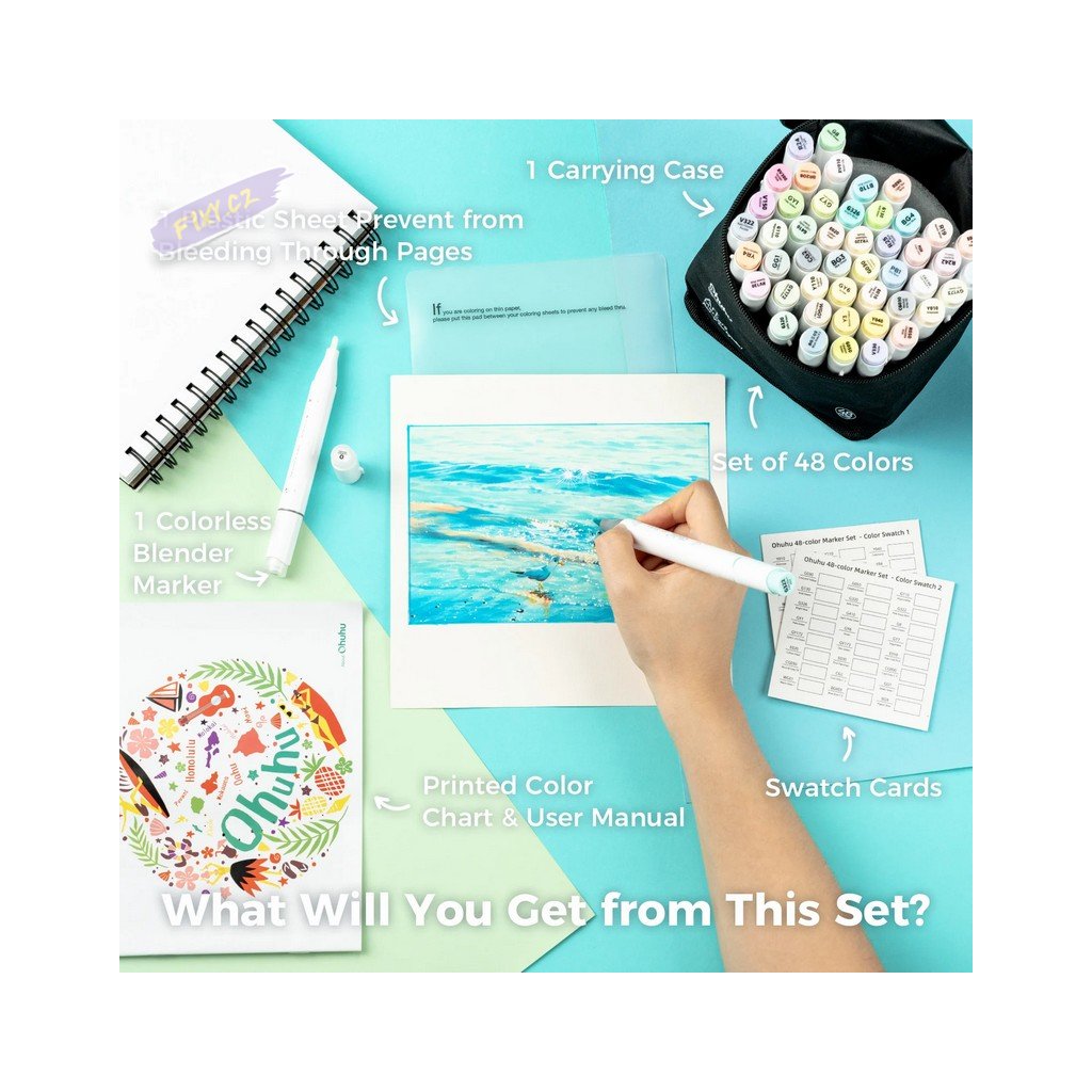 Lihové fixy OHUHU oboustranné Brush & Chisel, 48ks pastelové nr.2 + blender