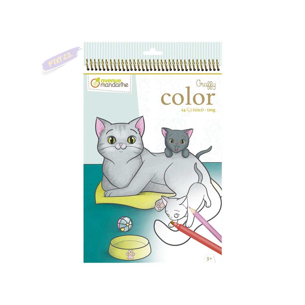 Omalovánky AVENUE MANDARINE Graffy Color ve velkém formátu s různými motivy. Předřezané listy pro případné snadnější vytržení z bloku. Omalovánky obsahují 24 listů, 12 motivů po 2ks. Gramáž 160g. Rozměry balení: 21x34,2cm.