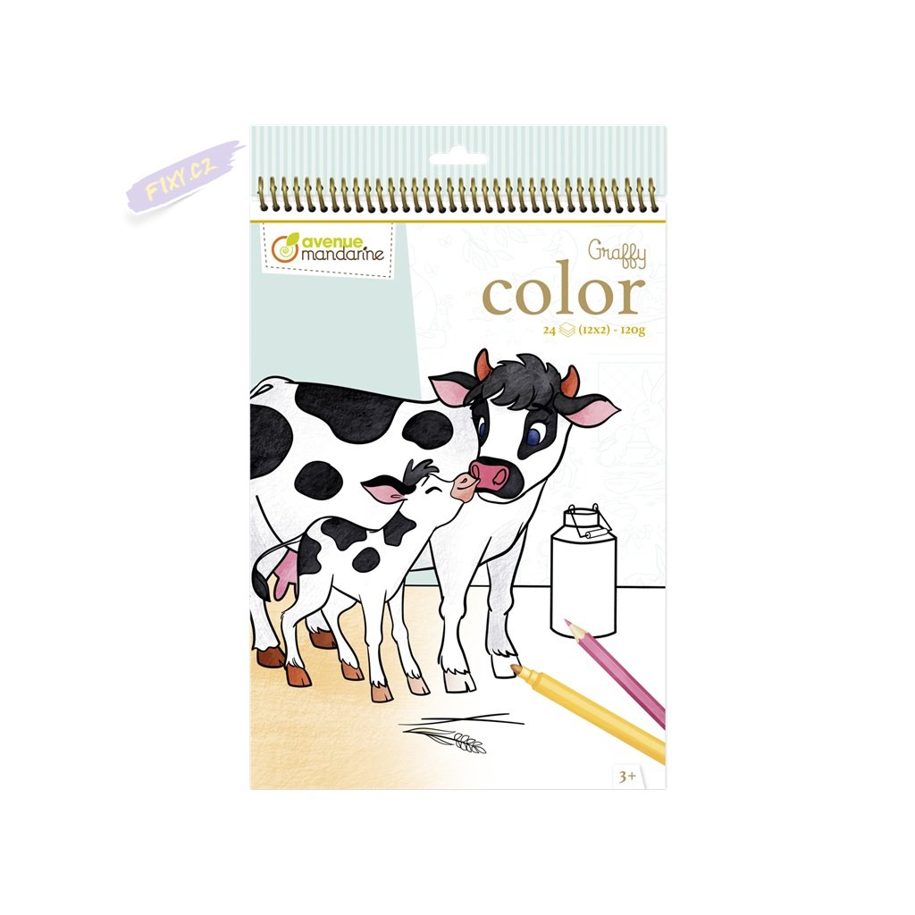Omalovánky AVENUE MANDARINE Graffy Color ve velkém formátu s různými motivy. Předřezané listy pro případné snadnější vytržení z bloku. Omalovánky obsahují 24 listů, 12 motivů po 2ks. Gramáž 160g. Rozměry balení: 21x34,2cm.
