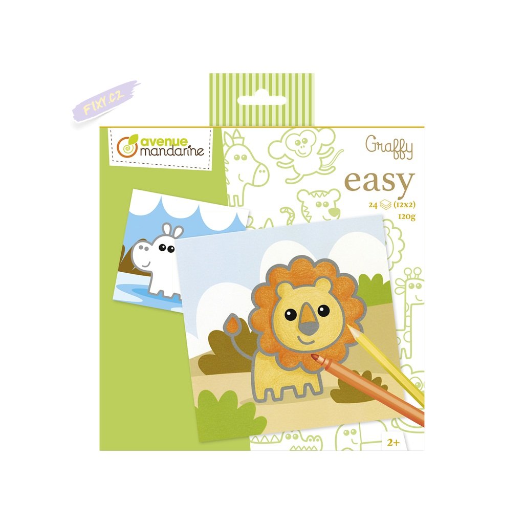 Omalovánky AVENUE MANDARINE Graffy Easy s různými motivy. Mají silné okrajové linky pro zamezení možného přetahování. Předřezané listy pro případné snadnější vytržení z bloku. Omalovánky obsahují 24 listů, 12 motivů po 2ks. Gramáž 120g. Rozměry balení: 20x25,5cm.