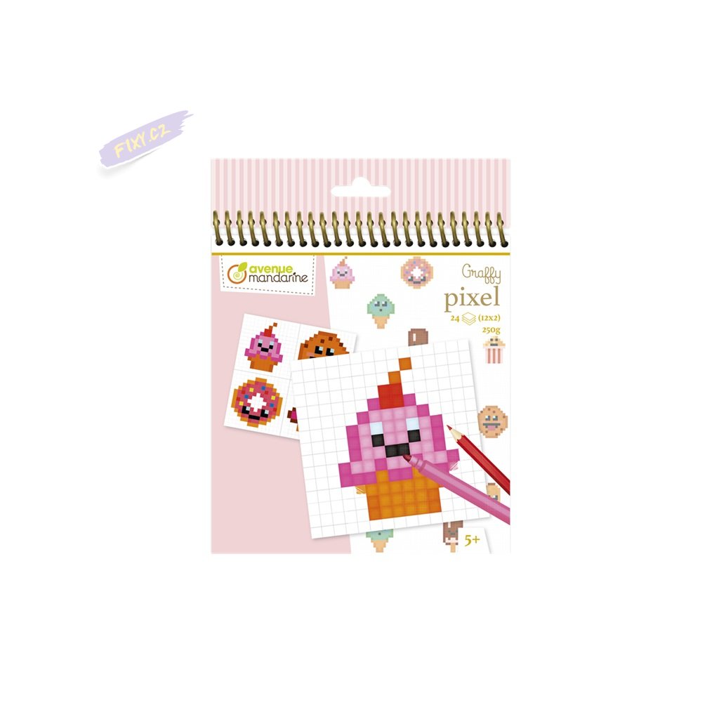 Omalovánky AVENUE MANDARINE Graffy Pixel s různými motivy. Omalovánky jsou určené k překreslení modelu z předchozí stránky. Omalovánky mají kroužkovou vazbu pro zajištění rovného podkladu a čtverečkový papír usnadňující překreslení. Obsahují 24 listů, 12 motivů po 2ks. Gramáž 250g. Lze použít na všechny techniky - pastelky, fixy, akvarel atd. Rozměry balení: 15x20,5cm.