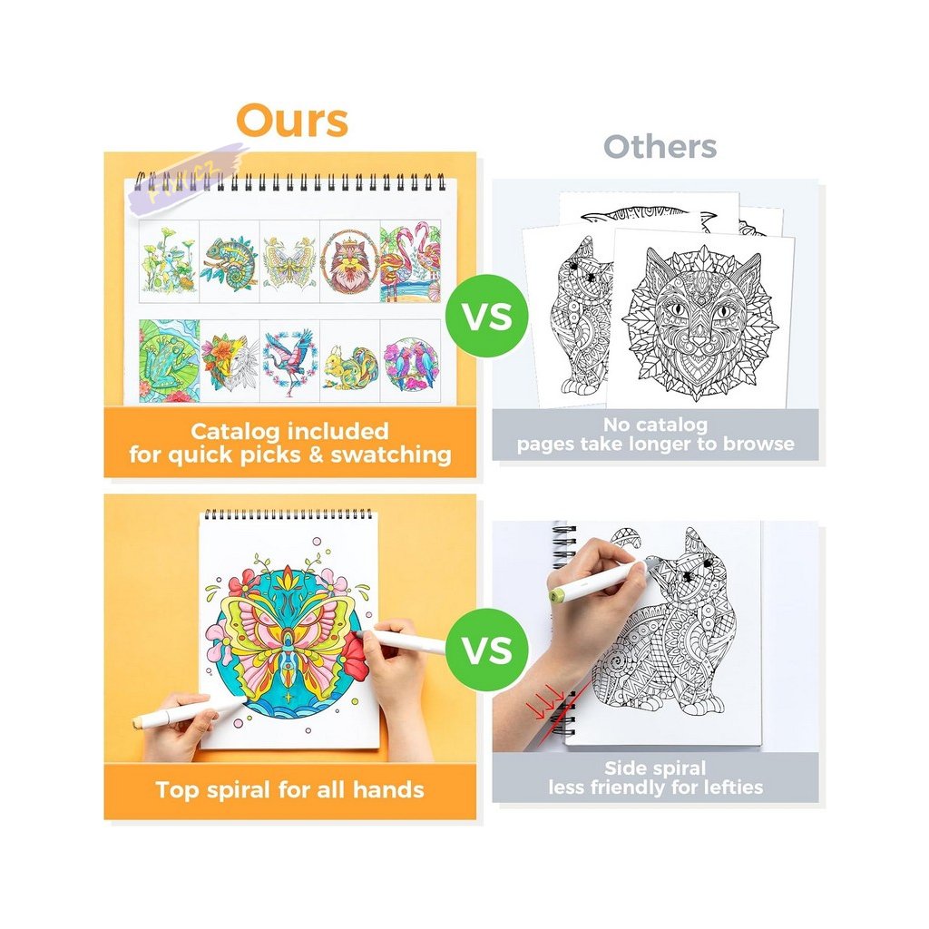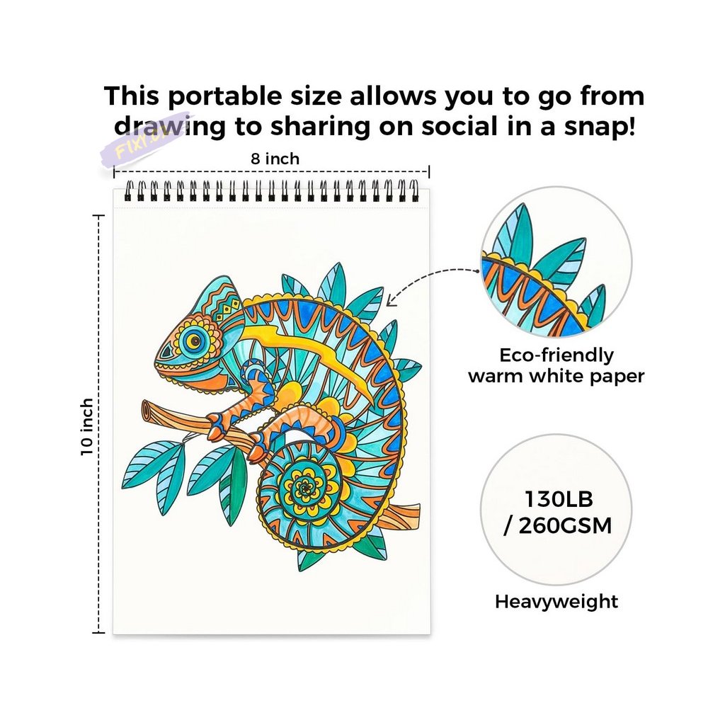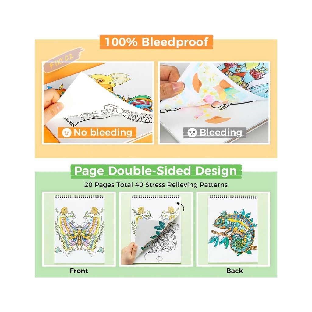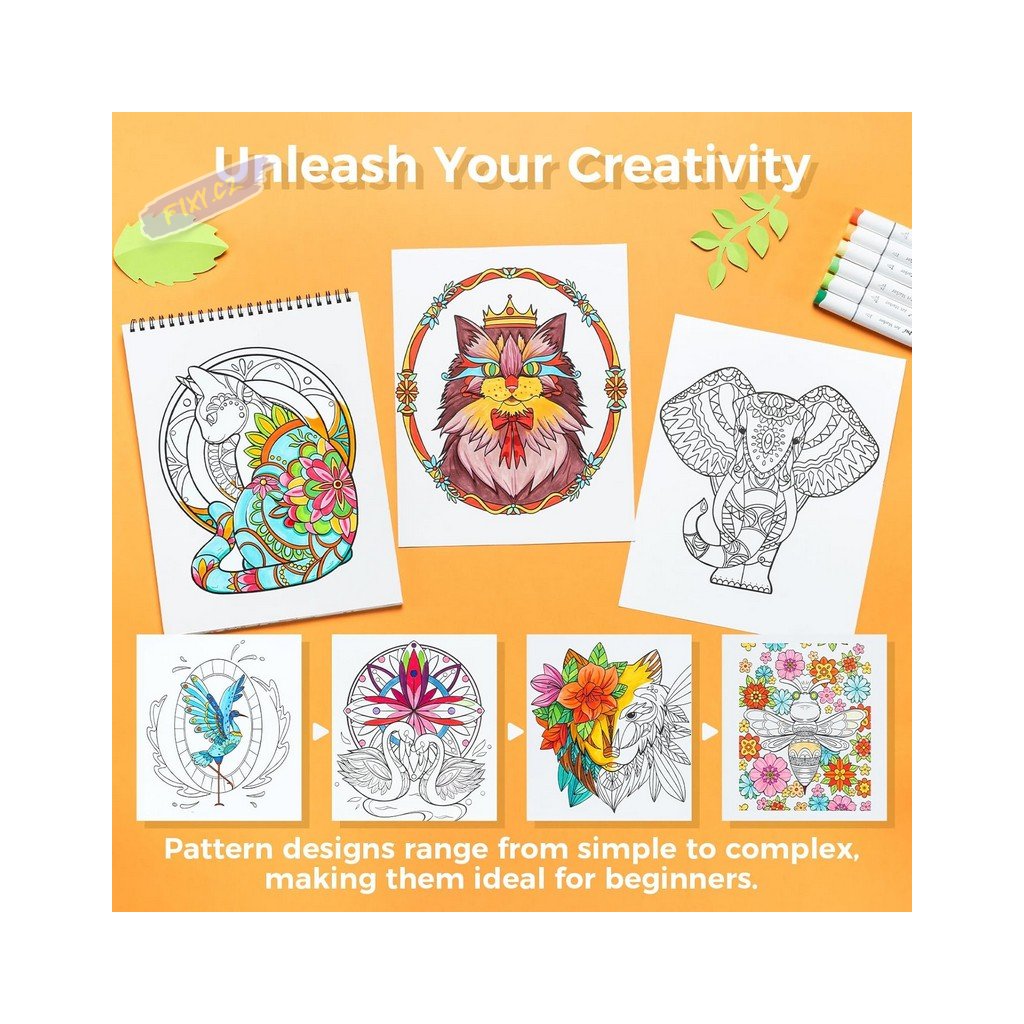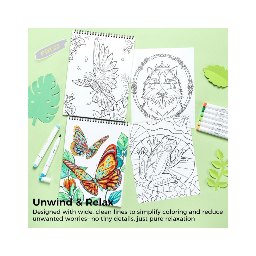 Oboustranné nepropustné omalovánky OHUHU se 40 různými motivy k vymalování pro úlevu od stresu. Praktický rejstřík poskytne ukázku všech vzorů, takže si snadno vyberete další stránku podle nálady nebo si předem naplánujete barevné schéma pro plynulejší a zábavnější tvůrčí proces. Vysoce kvalitní kreslicí papír gramáže 260g/m² s certifikací FSC. Omalovánky OHUHU jsou odolné a udržitelné, hladký a rovný povrch papíru se skvěle hodí k alkoholovým fixám značky OHUHU. I když se doba schnutí inkoustu může mírně lišit ve srovnání s běžným papírem, tak ani začátečníci se nemusí obávat rozpíjení inkoustu. Díky tučným, jednoduchým liniím tento design minimalizuje složité detaily, takže vybarvování je bezstresové a relaxační. Je ideální pro všechny věkové kategorie a pomáhá vám soustředit se na zábavu z vybarvování, aniž byste se cítili zahlceni drobnými detaily. Spirálová vazba umožní otáčení stránek o celých 360 stupňů a kreslit bez problémů z libovolného úhlu. Je ideální pro leváky i praváky a poskytuje plynulý a pohodlný zážitek. Se svými rozměry je tato kniha omalovánek ideální pro focení a sdílení na sociálních sítích. Díky snadno odtrhávacím listům můžete svá umělecká díla rychle vyjmout a darovat přátelům, zarámovat je jako dekoraci nebo si jednoduše užít výjimečné okamžiky, které jste vytvořili.