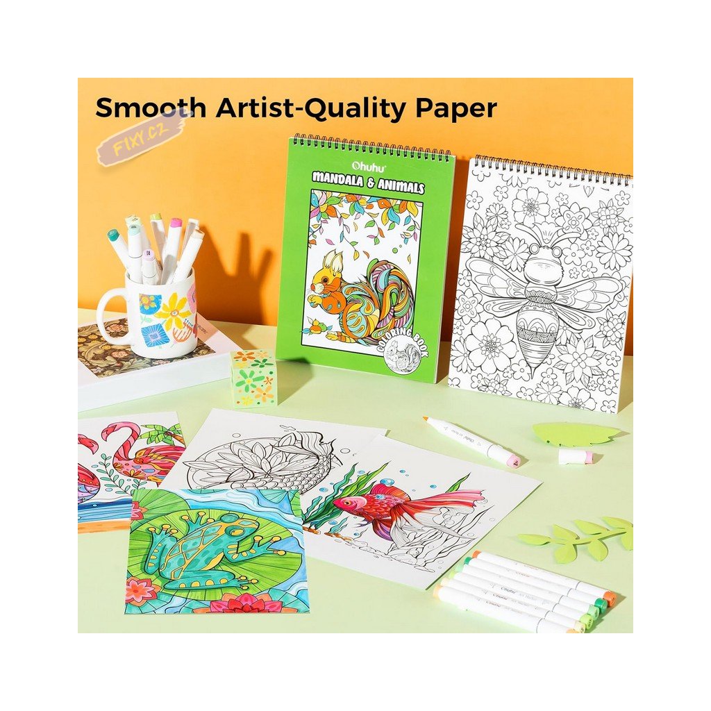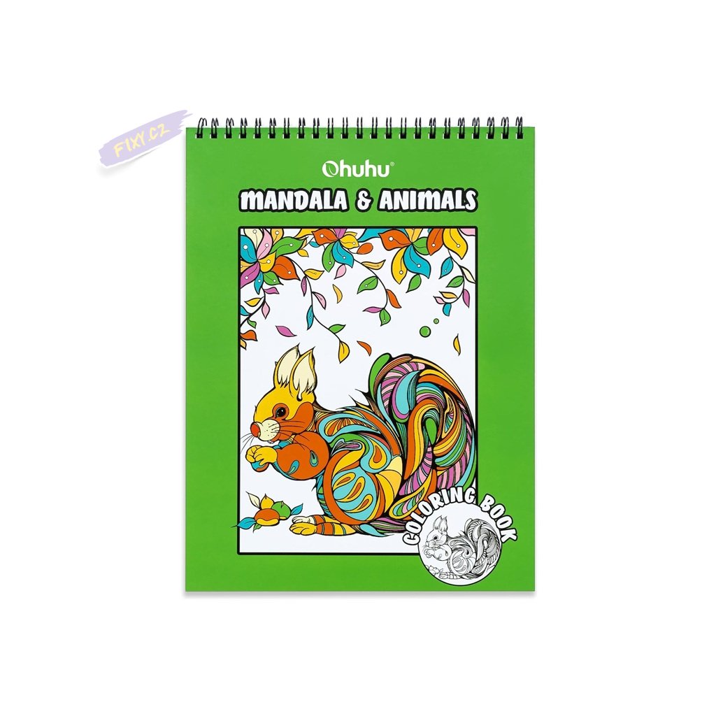 Omalovánky OHUHU Coloring Book A4, 20 listů Mandala & Animals