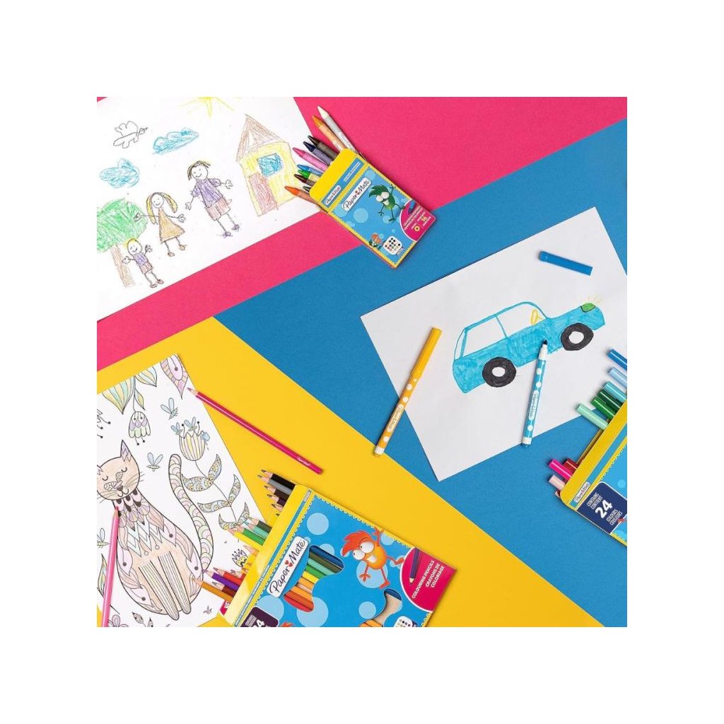 Voskovky PaperMate Wax Crayons pomáhají dětem rozvíjet jejich kreativitu a jemnou motoriku. Díky výrazným barvám a snadnému nanášení se skvěle hodí pro kreslení a vybarvování bez námahy.