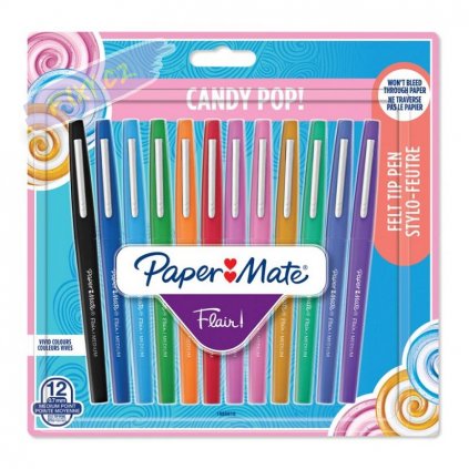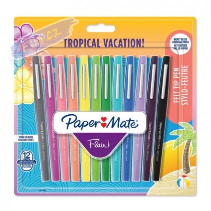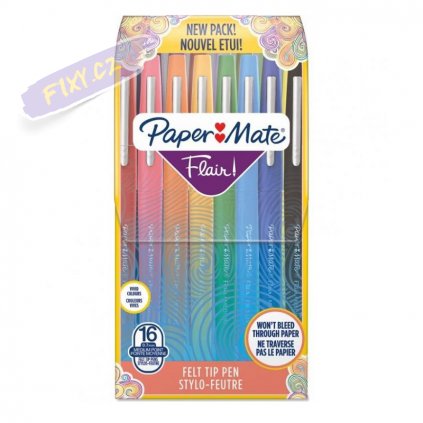 PAPER MATE Flair rozjasní Vaší tvorbu ať už píšete, skicujete nebo dokonce malujete. Rychleschnoucí inkoust je odolný proti rozmazání a nebude na stránce prosvítat. Fixy mají odolný kovem zesílený plstěný hrot, stylový design s matným povrchem a kovovou sponou.