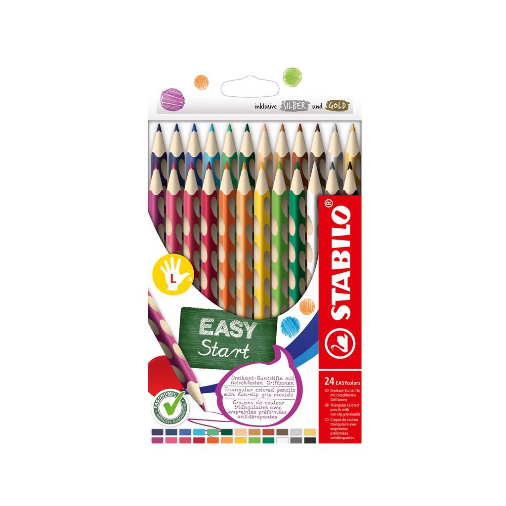 Nikdy není příliš brzy začít se správným držením pastelky. STABILO Easy Colors vede děti hravou formou ke správnému úchopu. Tyto ergonomicky tvarované pastelky zvlášť pro praváky a leváky byly vyvinuty odborníky speciálně pro předškolní a školní děti. Díky trojhrannému silnějšímu tvaru a speciálním ploškám vedou děti intuitivně ke správnému úchopu pastelky.