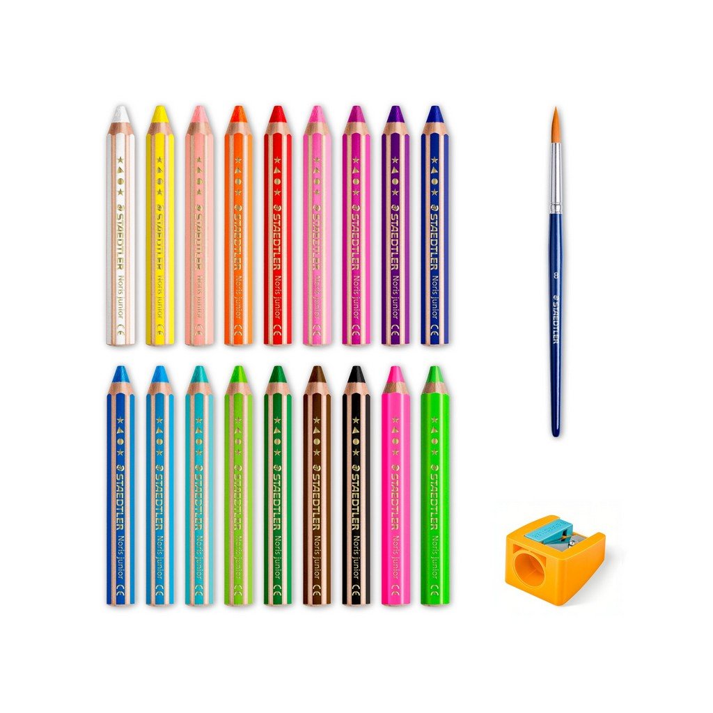 Multifunkční pastelky STAEDTLER Noris Junior 3v1, 18 ks + ořezávátko a štětec