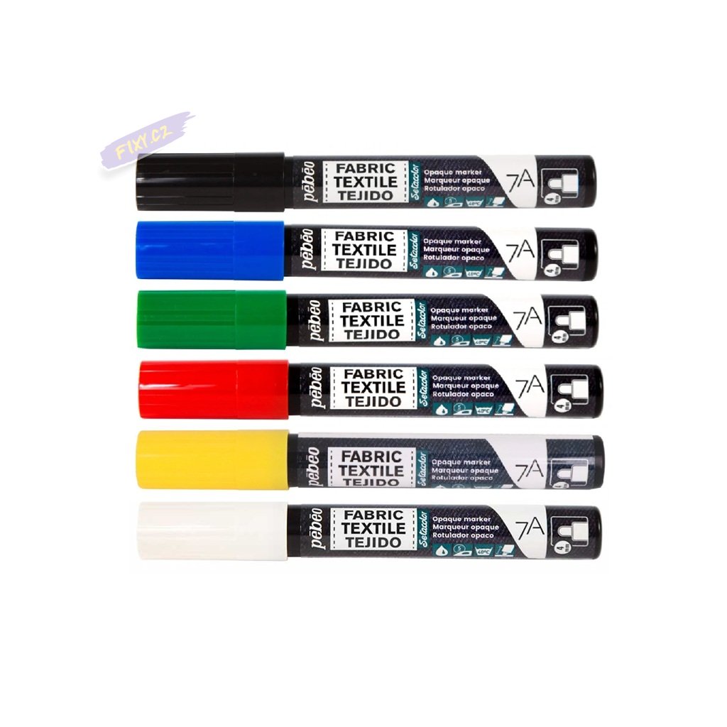 PEBEO 7A Opaque jsou profesionální popisovače na textil. Fixy mají 4mm kulatý hrot pro přesné nanášení barvy a obsahují zářivý, poloprůhledný inkoust vhodný pro aplikaci na světlé a barevné tkaniny. Všechny barvy lze zafixovat nažehlením na rubovou stranu látky po dobu 5 minut (bez páry), poté, co se aplikace nechá 2 hodiny schnout na vzduchu. Po zafixování barvy drží při ručním praní nebo praní v pračce do 40°C. Před použitím dobře protřepejte.