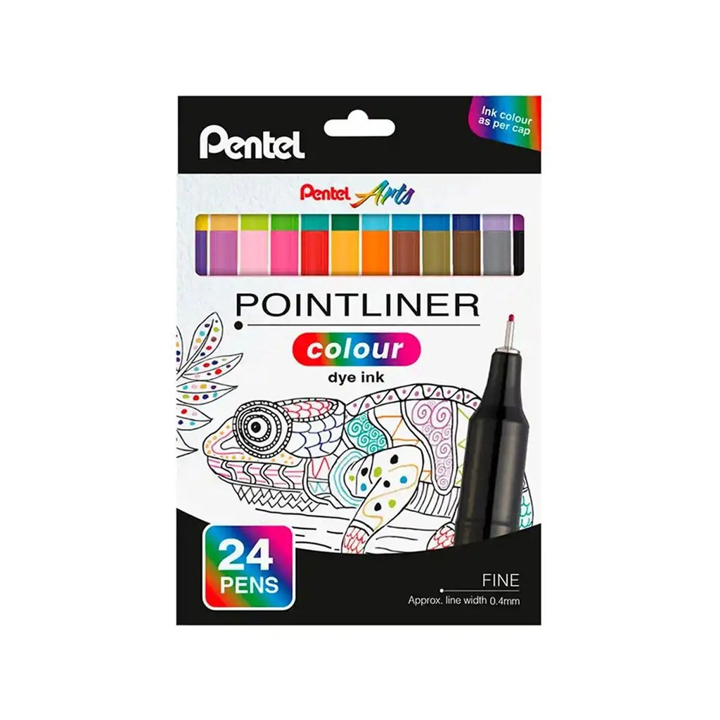 Linery PENTEL akvarelové 0,4 mm, 24 ks