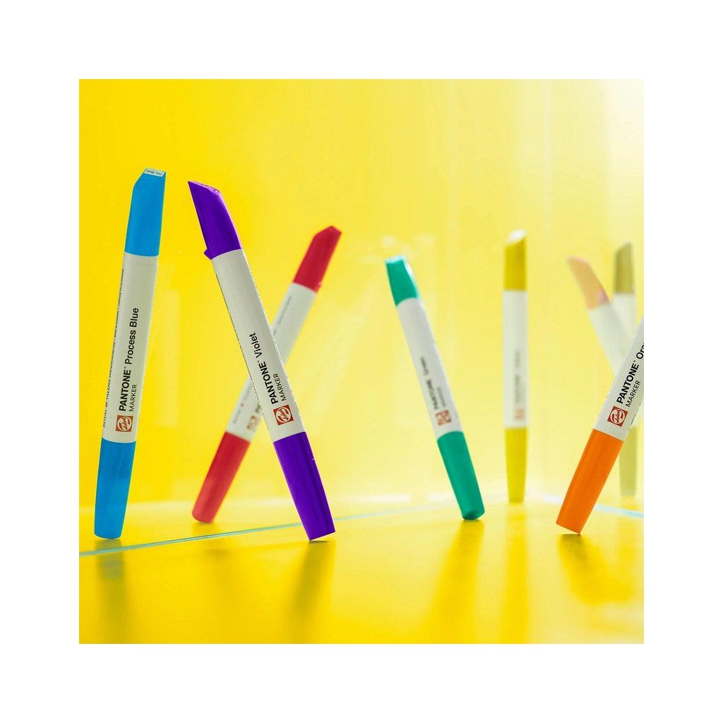 Vysoce kvalitní oboustranné popisovače Royal Talens PANTONE obsahují pigmentový inkoust na vodní bázi v živých barvách založených na systému Pantone Matching System. Pečlivě formulováno, upraveno a testováno společností Talens, společně navrženo a oficiálně schváleno společností Pantone.