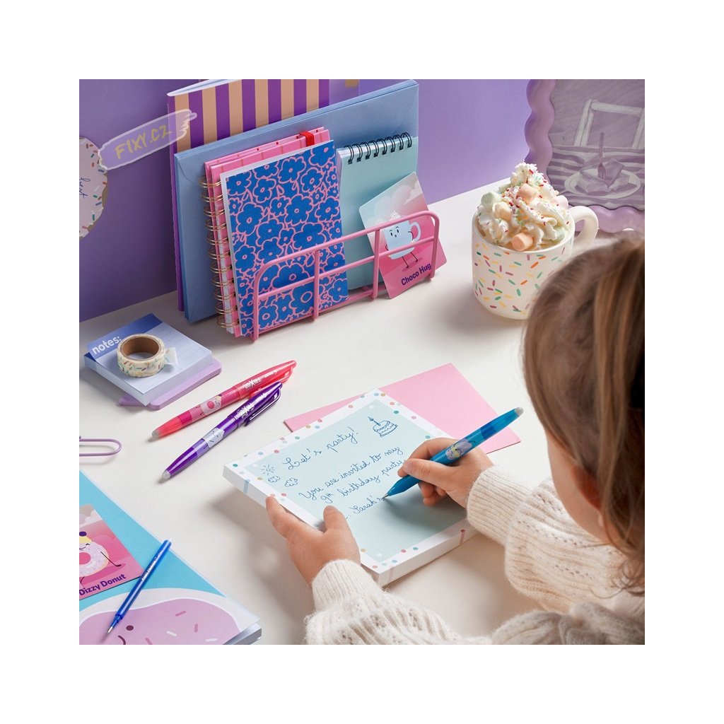 S rollerem FriXion napiš, vygumuj a přepiš! Vygumujte beze zbytků pomocí tepla, které vzniká třením gumovacího hrotu FriXion o papír, a který nezanechává žádné zbytky. Použijte stejné pero pro psaní a přepsání. Použijte roller FriXion Ball Clicker s patentovaným termosenzitivním inkoustem, se kterým přináší Pilot revoluci v psaní.