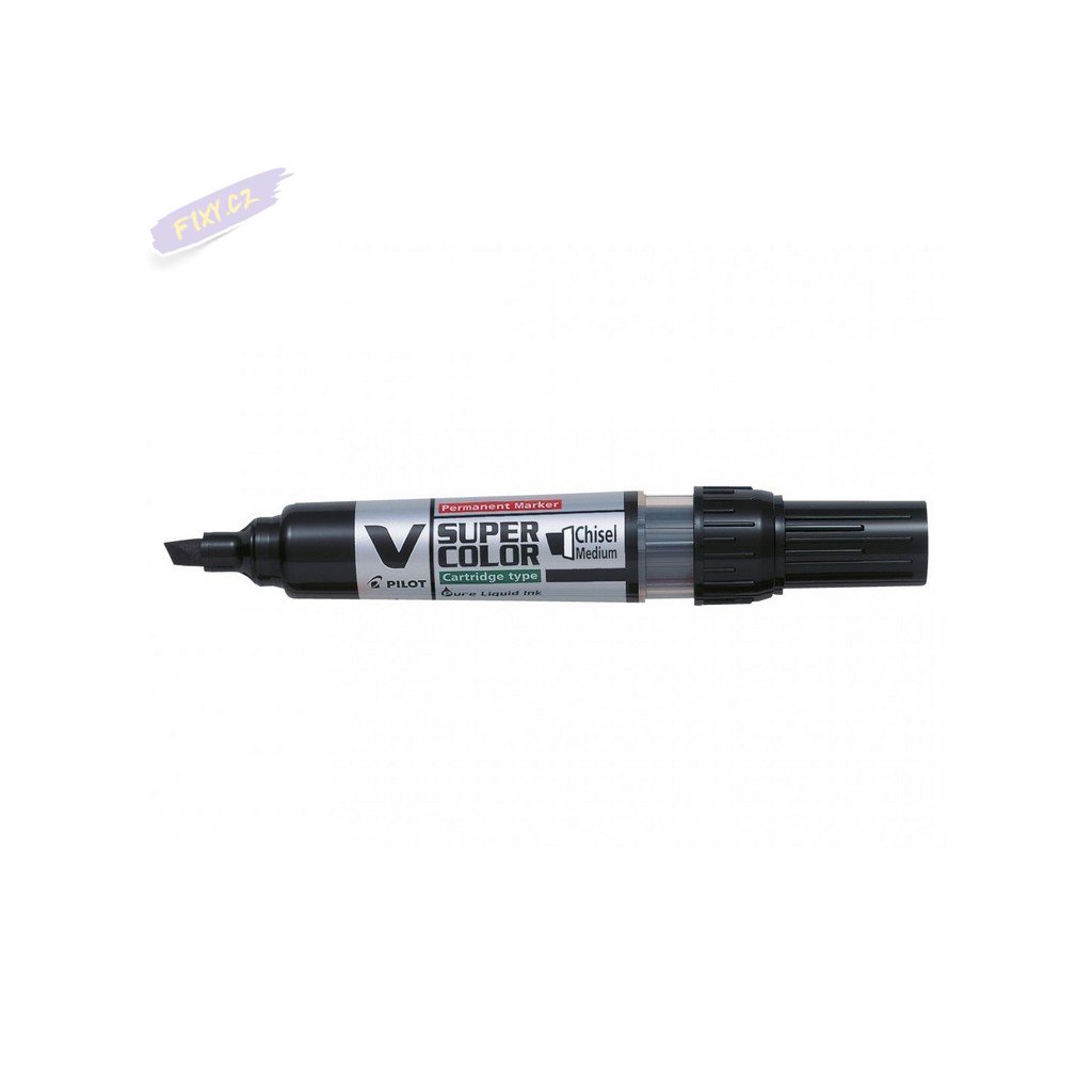 Permanentní popisovač PILOT V-Super Color s vyměnitelnou tekutou lihovou náplní. Systém zásobení inkoustem umožňuje okamžité psaní bez třepání a pumpování, stejně jako rovnoměrný tok inkoustu.