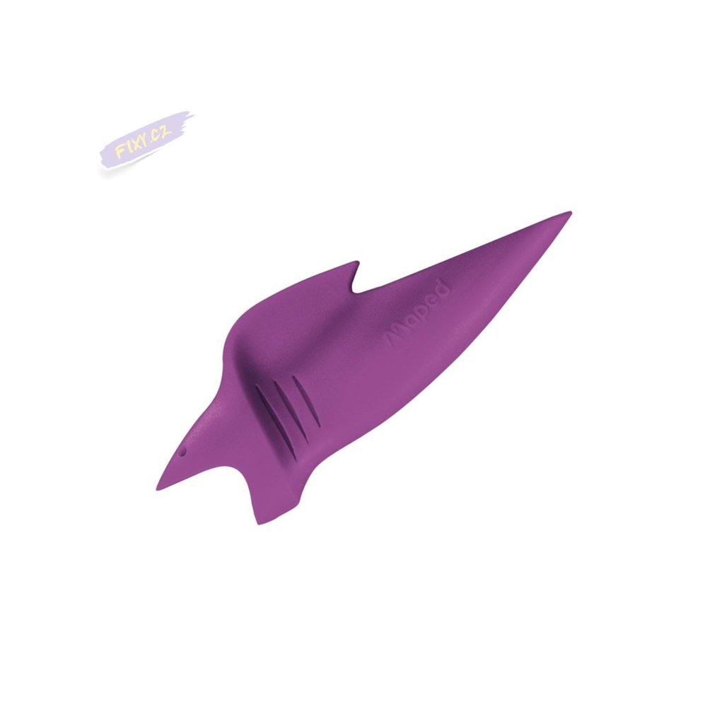 Plastový barevný nástavec na tužku v designu žraloka, který pomáhá dětem s nácvikem správného úchopu.