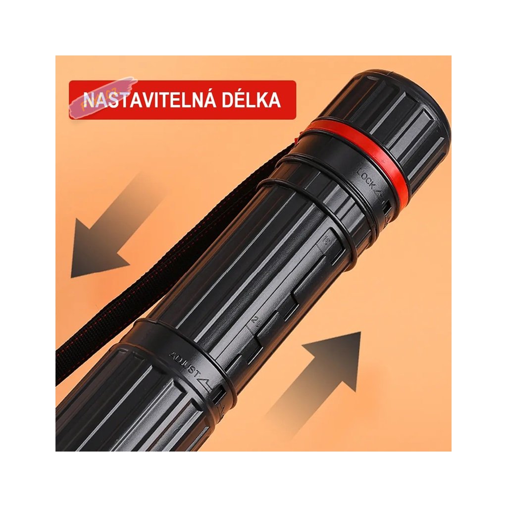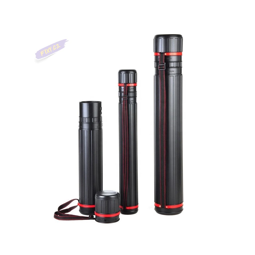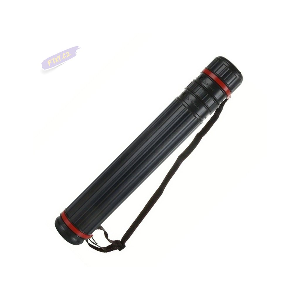 Praktické plastové pouzdro na výkresy má průměr 6,5 cm a nastavitelnou délku od 45 cm do 72 cm. Délka se po nastavení požadované délky uzamkne otočením tubusu. Popruh umožňuje snadné přenášení tubusu.