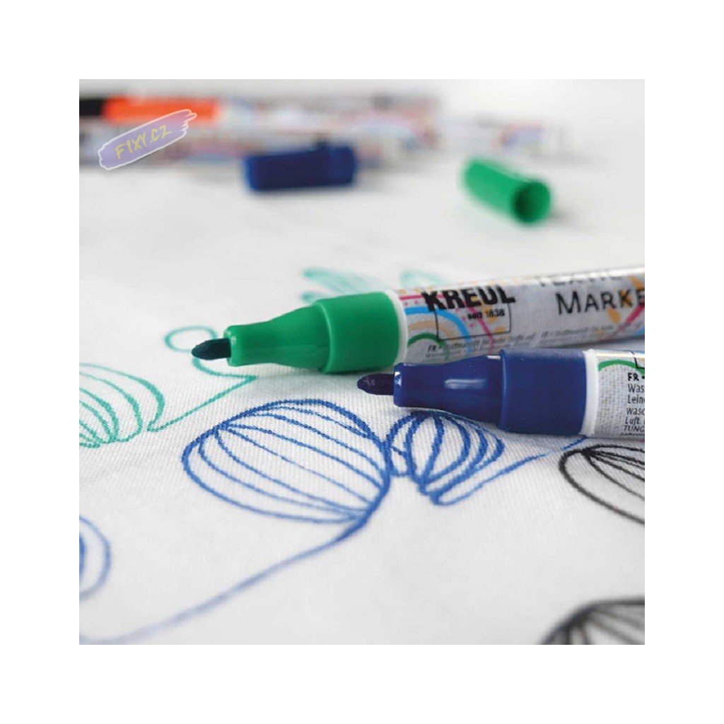 Popisovač na světlý textil KREUL s univerzálním hrotem. Vysoká kvalita pigmentů na vodním základě je ideální pro bavlnu, batist, prádlo, hedvábí a textil s příměsí až do 20% syntetického vlákna. Po zažehlení světlostálý a praní odolný až do 60°C.