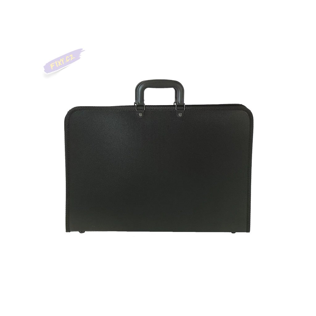 Portfolio s rukojetí a řemenem přes rameno. Uvnitř se nachází přihrádka na výkresy. Povinné vybavení pro všechny kreativce, malíře nebo studenty.