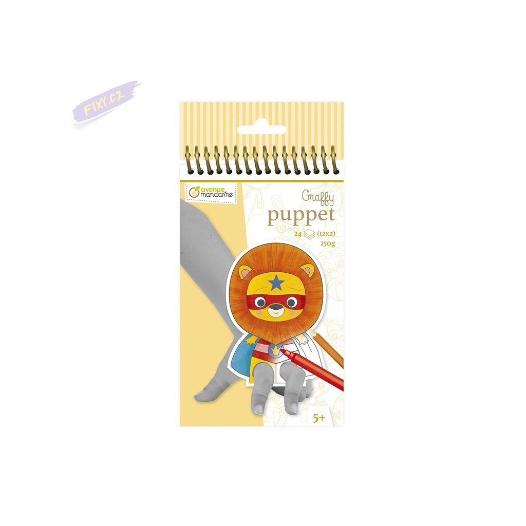 Omalovánkové loutky AVENUE MANDARINE Graffy Puppet s různými motivy. Předem připravené a upravené pro následné použití jako prstové loutky. Omalovánky obsahují 24 listů, 12 pohádkových motivů po 2ks. Gramáž 250g. Lze použít na všechny techniky - pastelky, fixy, akvarel atd. Rozměry balení: 10x20cm.