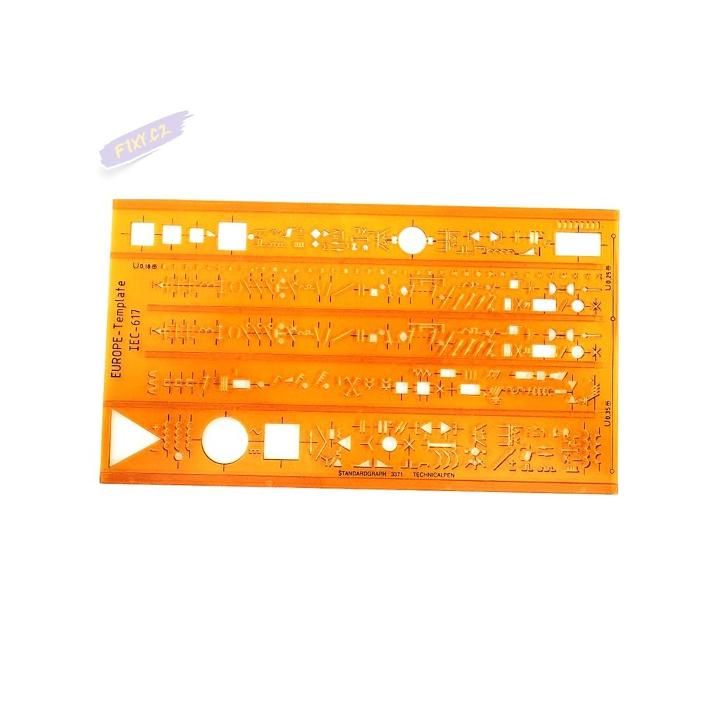 Šablona Graph'It z ohebného a průhledného plastu pro snadné kreslení elektro symbolů.