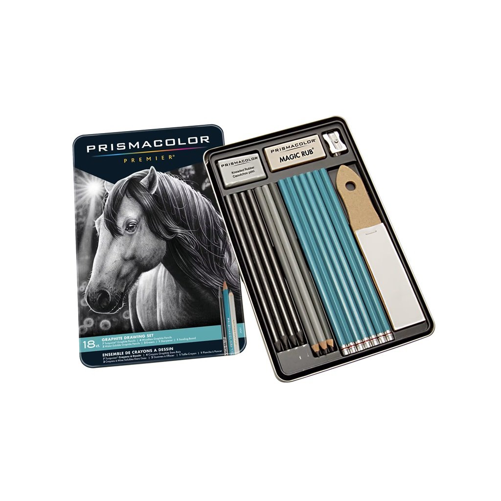 Nakreslete tmavé stíny, ostré linie i smyslné střední tóny se sadou tužek na kreslení Prismacolor Premier Graphite. Sada obsahuje sedm tyrkysových kreslicích tužek s tvrzenými jádry odolnými proti rozbití, čtyři univerzální bezdřevé grafitové tužky, které lze používat ořezané i tupé a tři ve vodě rozpustné ebenové tužky, které vytvářejí intenzivní tmavé stopy. Součástí sady je ještě tvarovací plastická a vinylová guma, ocelové ořezávátko a brousek.