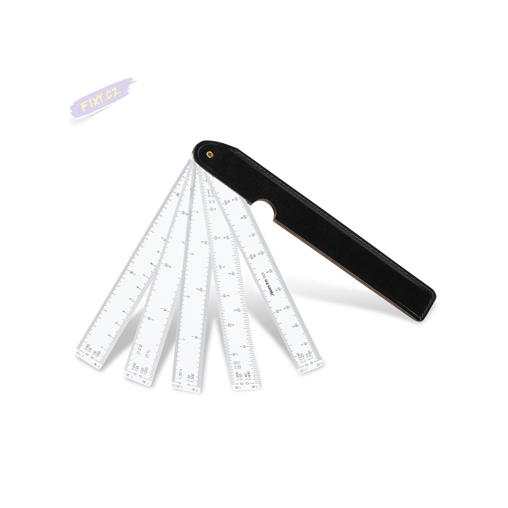 Sada poměrových měřítek ARISTO v praktické kapesní podobě, 5 pravítek s různými stupnicemi: 1:10, 1:15, 1:20, 1:25, 1:30, 1:33, 1:40, 1:50, 1:75, 1:100, 1:125, 1:150, 1:200, 1:250, 1:300, 1:400, 1:500, 1:750, 1:1250, 1:2,5, 1:5, 2:1 a 5:1.