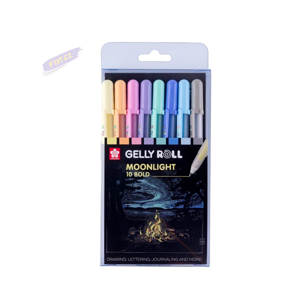 Gelly Roll Moonlight píší hladce a mají konstantní tok inkoustu. Jemné linky rychle schnou a nevyblednou. Pero je ideální pro kreslení, psaní, psaní deníku a zdobení. Krémový, hladký, neprůhledný inkoust je ideální pro kreslení a vybarvování na barevný, bílý a černý papír.