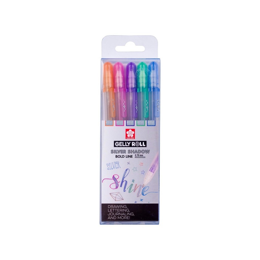 Gelové popisovače SAKURA Gelly Roll Shadow, 5 ks Silver