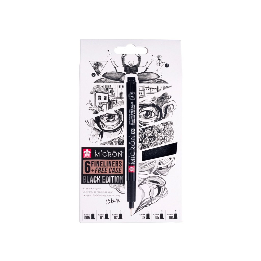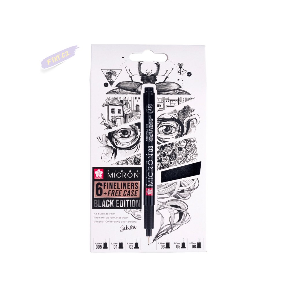 Sada obsahuje: PIGMA MICRON černý 0,2mm / 0,25mm / 0,3mm / 0,35mm / 0,45mm / 0,5mm