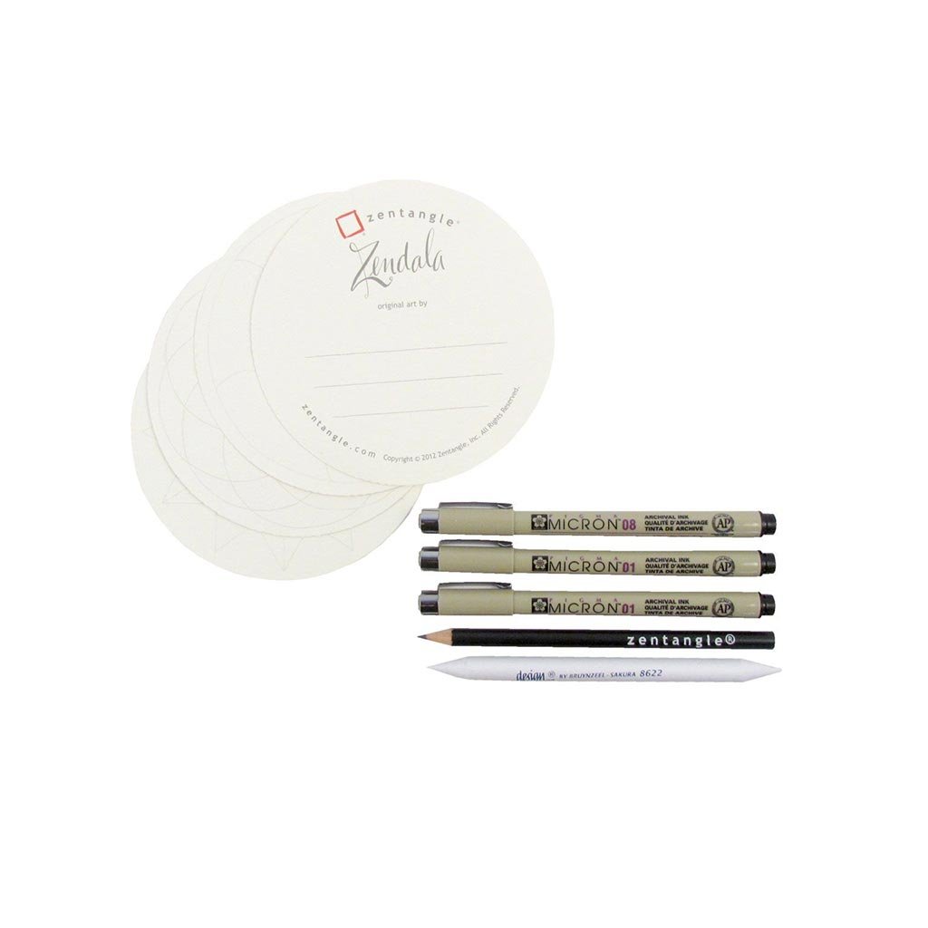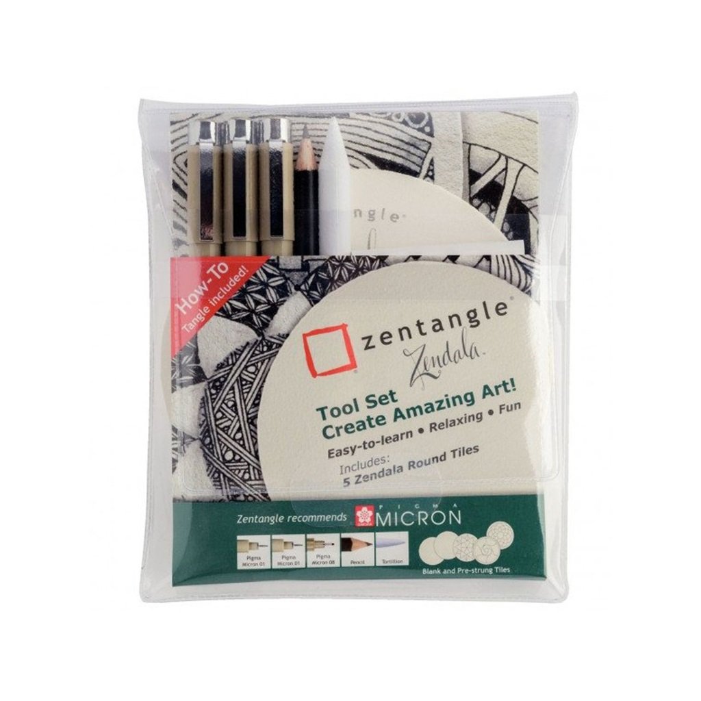 Sada obsahuje: PIGMA MICRON 2x černý 0,25mm / 0,5mm + grafitová tužka BRUYNZEEL + roztírátko BRUYNZEEL + 5x speciální kulatá kartička ZENTANGLE