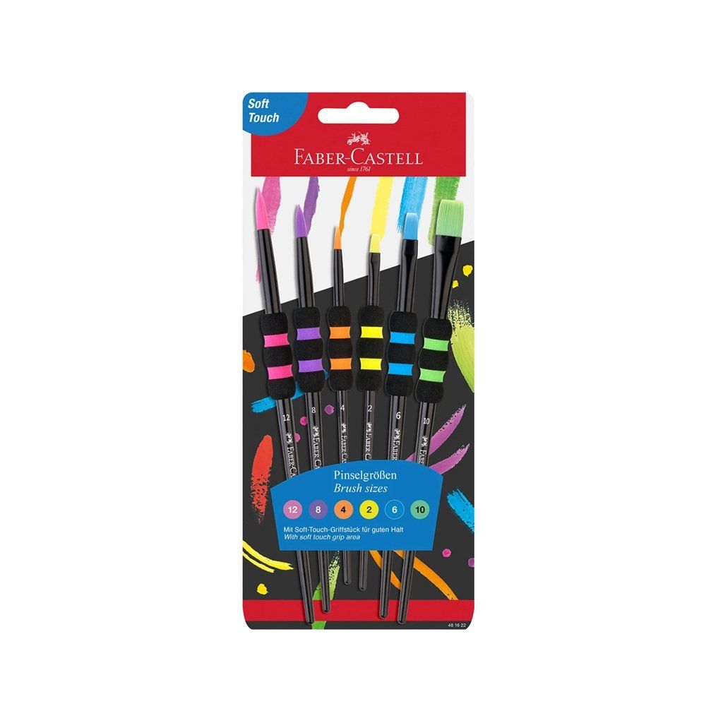 Sada 6 kusů atraktivních štětců Faber-Castell Soft Touch Black s ergonomickou oblastí úchopu a tělem v černé barvě.