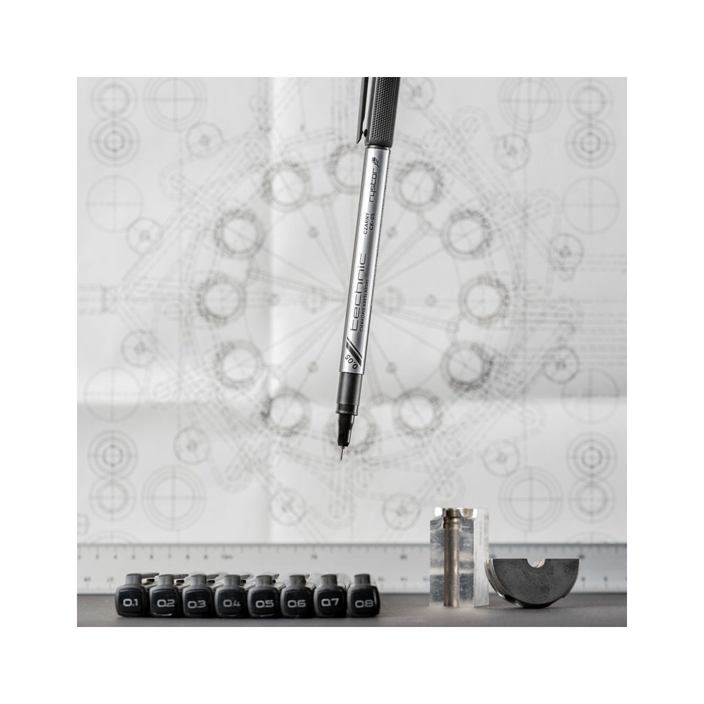 Technic Fineliner od značky RYSTOR má průměr hrotů od 0,05mm do 0,8mm a hrot štětcový, což umožňují přenést na papír i ty nejmenší detaily a prvky. Designéři oceňují preciznost, umělci možnost kreativního vyjádření. Inkoust je odolný vůči vodě, světlu a mechanickému setření. Nerozmazává se a nepropíjí se papírem.